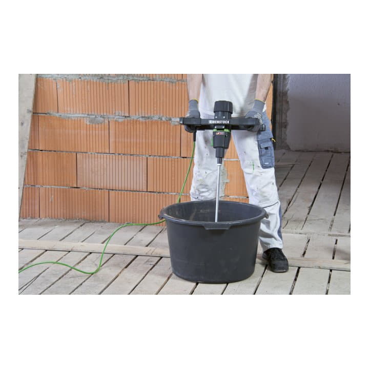 Interruttore elettronico protetto dalla polvere - Regolazione continua del numero di giri - Coperchio con guida a labirinto - Elementi di smorzamento e di protezione - Per materiali da costruzione a media e alta viscosità, ad esempio livellante, colla per piastrelle, malta pronta, intonaco pronto, massetto