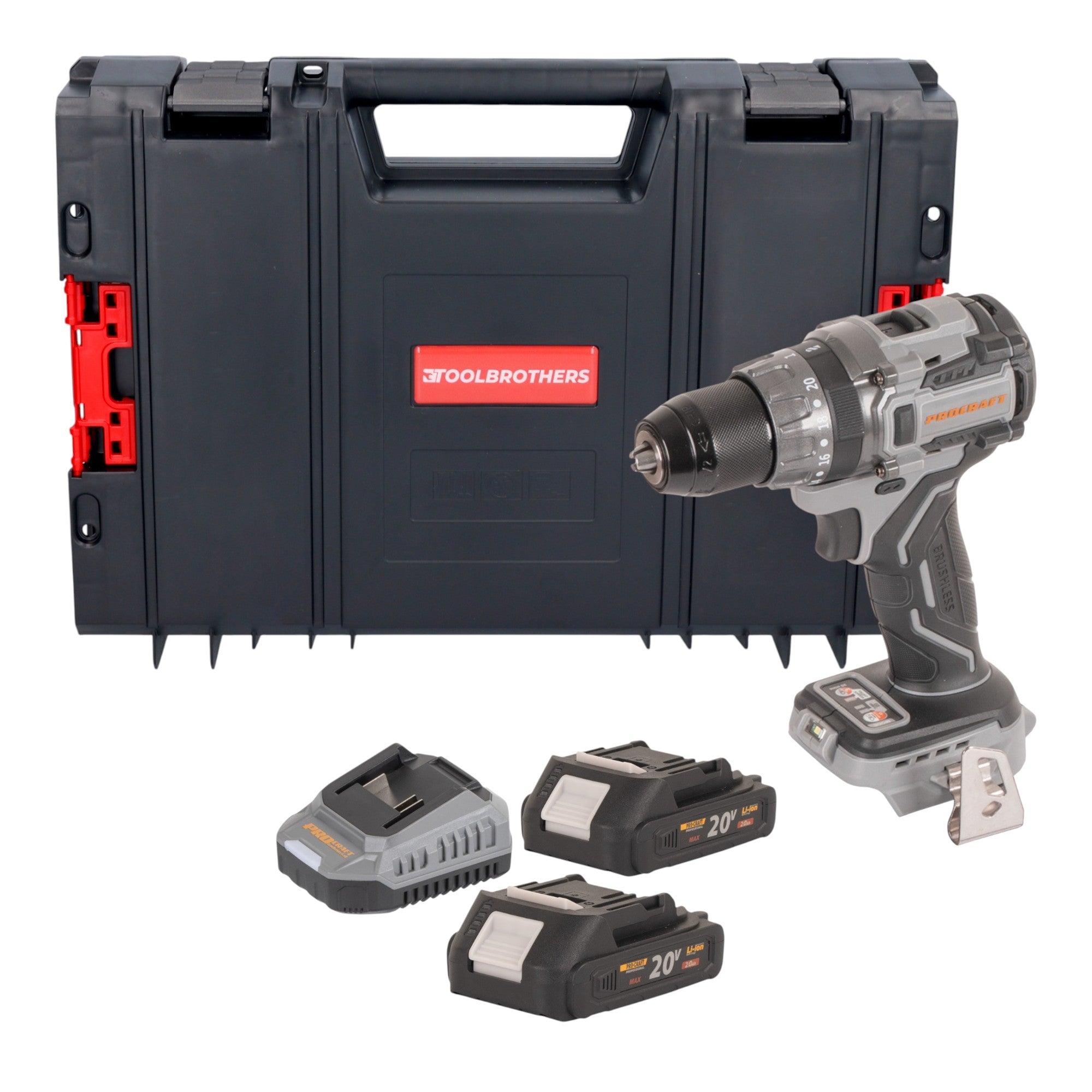 Procraft CD20Abb Trapano avvitatore a batteria 20 V 85 Nm + 2x batteria 2,0 Ah + caricabatteria + valigetta RHINO