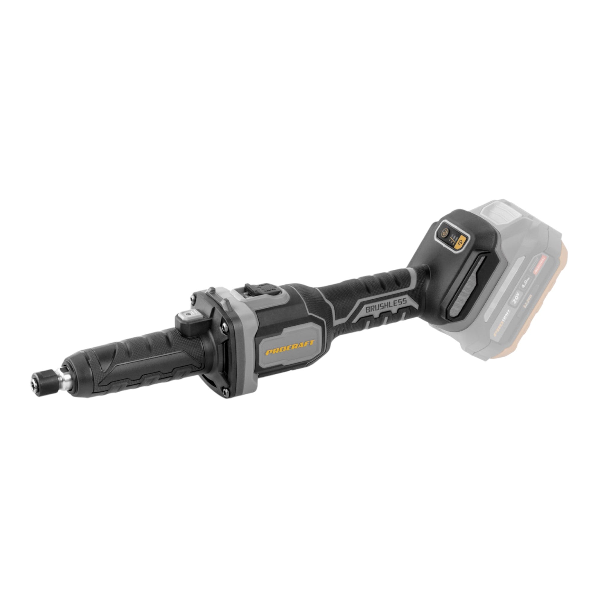 Procraft Industrial DG20A-BB Akku Geradschleifer 20 V 6 mm Brushless + 2x Akku 4,0 Ah + Ladegerät