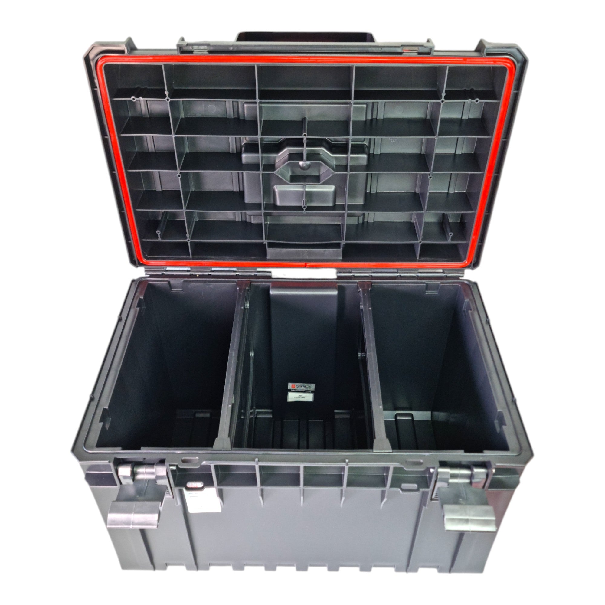 Con un'impressionante capacità di 52 litri, la valigetta portautensili Qbrick System ONE 450 2.0 Basic offre spazio sufficiente per utensili elettrici e manuali di grandi dimensioni. All'interno, due scomparti regolabili garantiscono un'organizzazione e una chiarezza ottimali. Grazie alla guarnizione flessibile, la valigetta è completamente protetta dall'ingresso di polvere e acqua secondo la norma IP66, rendendola ideale per l'uso in ambienti di lavoro difficili. Il coperchio Basic è dotato di una funzionale fessura di taglio personalizzata che offre ulteriori possibilità di applicazione. La struttura rinforzata del coperchio e del corpo garantisce un'elevata capacità di carico fino a 50 kg e può sopportare una pressione di 120 kg, in modo che la valigetta possa essere utilizzata anche come robusta piattaforma di lavoro. La versione 2.0 della linea di prodotti ONE è caratterizzata da un design ancora più stabile e offre opzioni di espansione flessibili grazie all'adattamento agli inserti filettati M8 per soddisfare le esigenze individuali dell'utente.