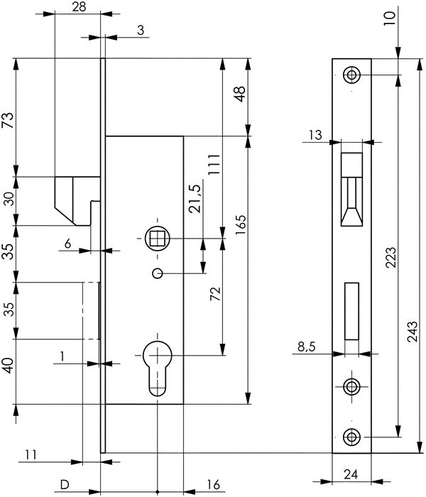 Serratura AMF per porte scorrevoli su telaio tubolare 8331 ( 3311021043 ) PZW arretrato 35 mm