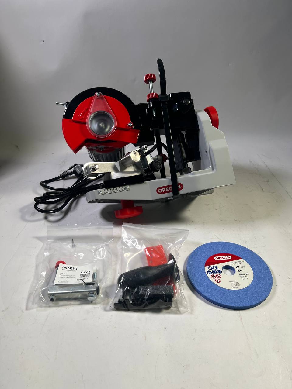 La smerigliatrice Oregon 620-230 è uno strumento potente e professionale per l'affilatura precisa delle catene di seghe, ideale per grandi quantità e per un uso intensivo. Grazie al supporto idraulico, la morsa viene bloccata automaticamente e senza regolazione manuale, facilitando così il lavoro. Con la sua capacità per tutti i tipi di catena, la macchina affila senza fatica catene fino a 3/4" e consente una regolazione precisa grazie all'ampio campo di serraggio e alle chiare marcature. La fornitura comprende tre dischi di rettifica, una dima rapida e una pietra per la ravvivatura, in modo da essere subito pronti all'uso. La struttura robusta con azionamento diretto (230 V, 214 W) e un'altezza di 48 cm garantisce stabilità e durata. Grazie alle sue prestazioni affidabili e alla maneggevolezza, la Oregon 620-230 è la scelta perfetta per i professionisti e le officine che apprezzano l'efficienza e la precisione.