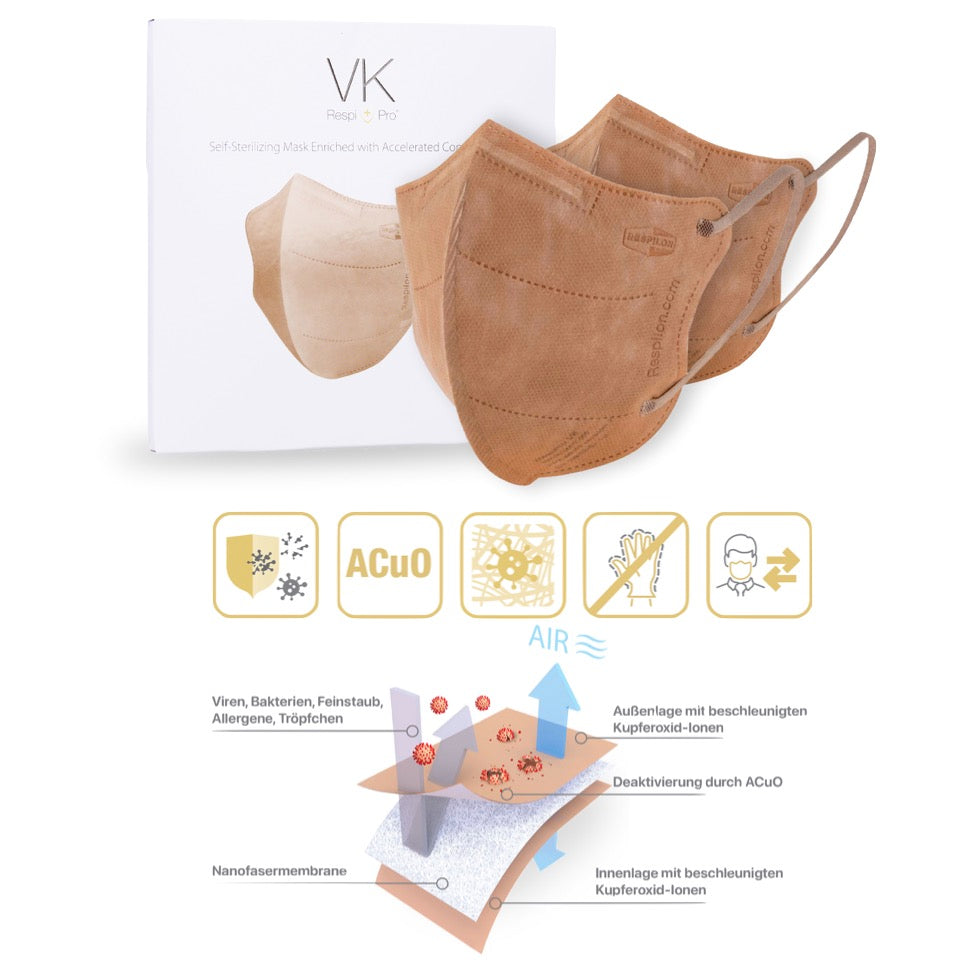Mascarilla respiratoria VK RespiPro 2 piezas Membrana de nanofibras reutilizable El revestimiento de óxido de cobre bloquea el 99,7 - 99,9 % de los virus Norma de la UE RFU 02.075