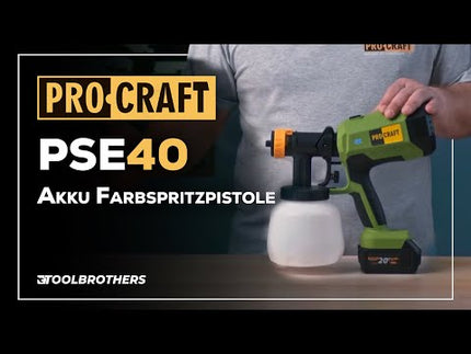 Die Procraft PSE40bb Akku Farbspritzpistole bietet kabellose Freiheit, hohe Präzision und einfachen Farbauftrag auf Holz, Metall & Kunststoff. Leicht und vielseitig einsetzbar!