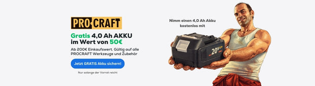 - Lege PROCRAFT Werkzeuge oder Zubehör im Wert von 200,00€ in Deinen Warenkorb.