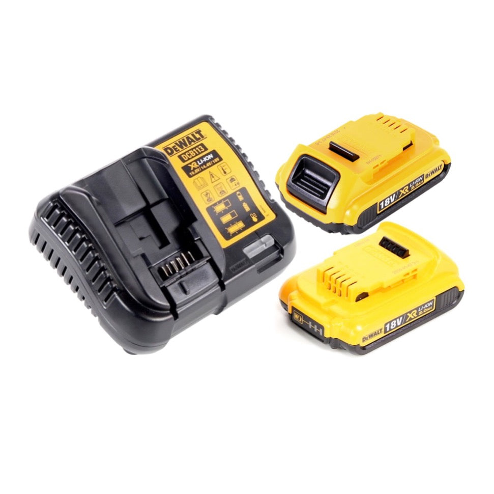 Tronzadora e ingletadora a batería DeWalt DCS 365 D2 18 V 184 mm + 2x baterías 2,0 Ah + cargador