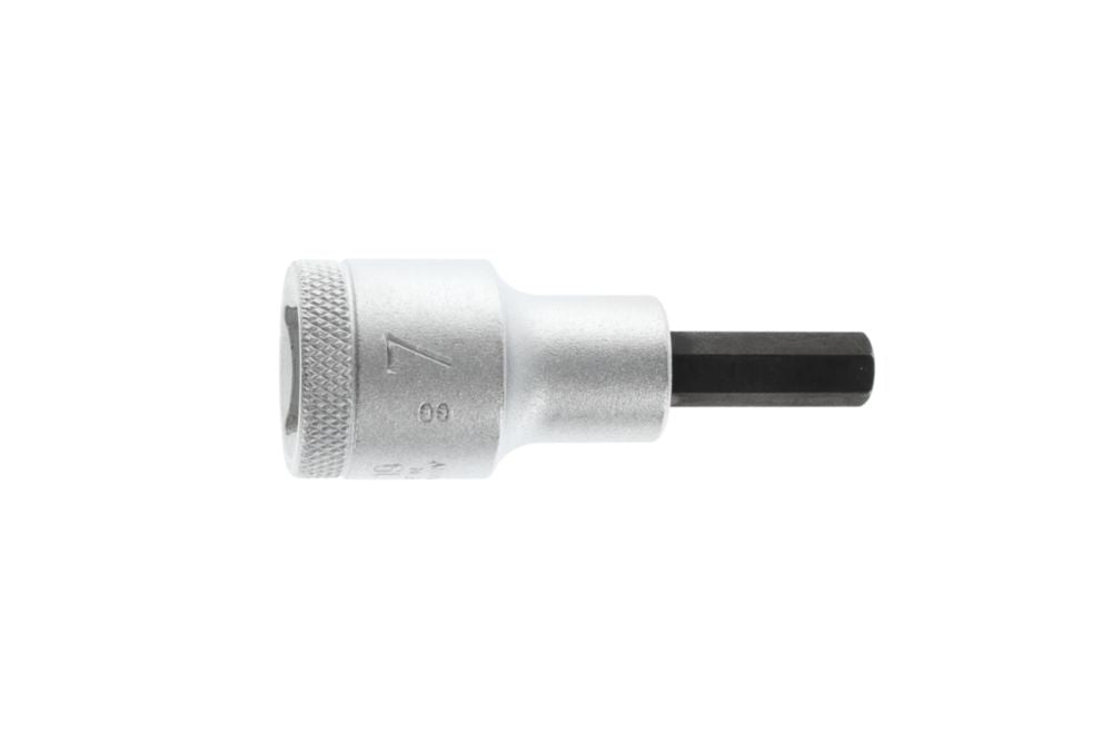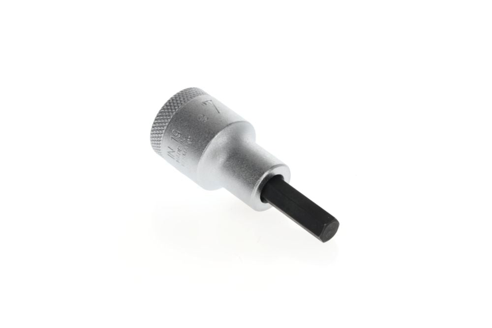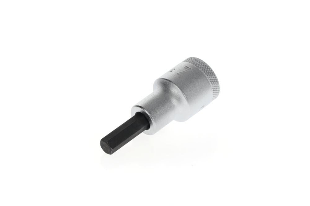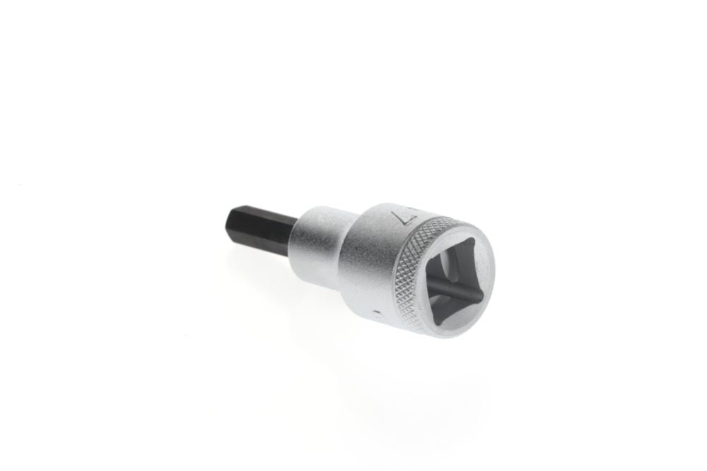Napęd kwadratowy 12,5 mm (1/2″) - do śrub z gniazdem sześciokątnym - wkładka ze stali wanadowej - ostrze ze specjalnej stali manganowo-fosforanowej - radełkowana z rowkiem na kulkę - DIN 7422