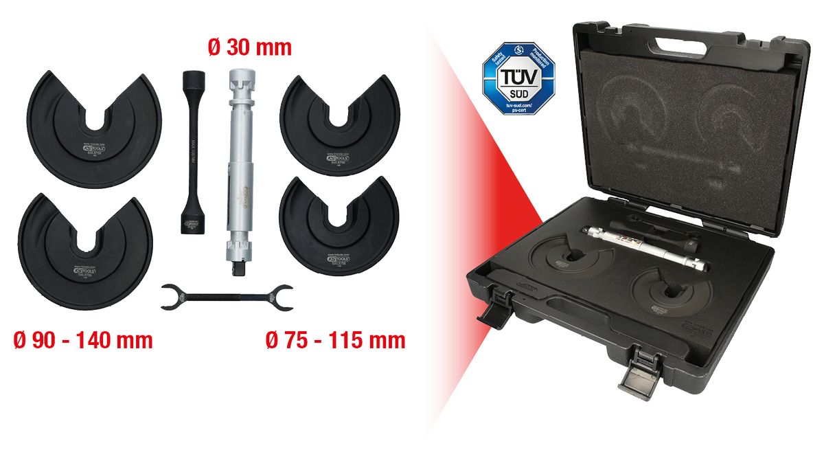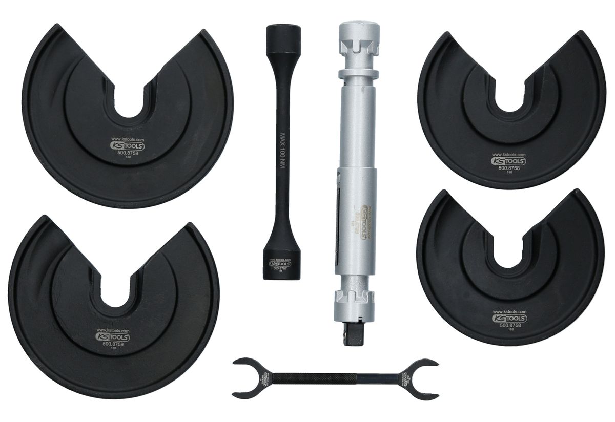 KS TOOLS Juego de tensores centrales universales para patas telescópicas para muelles interiores, 9 pzs ( 500.8755 )