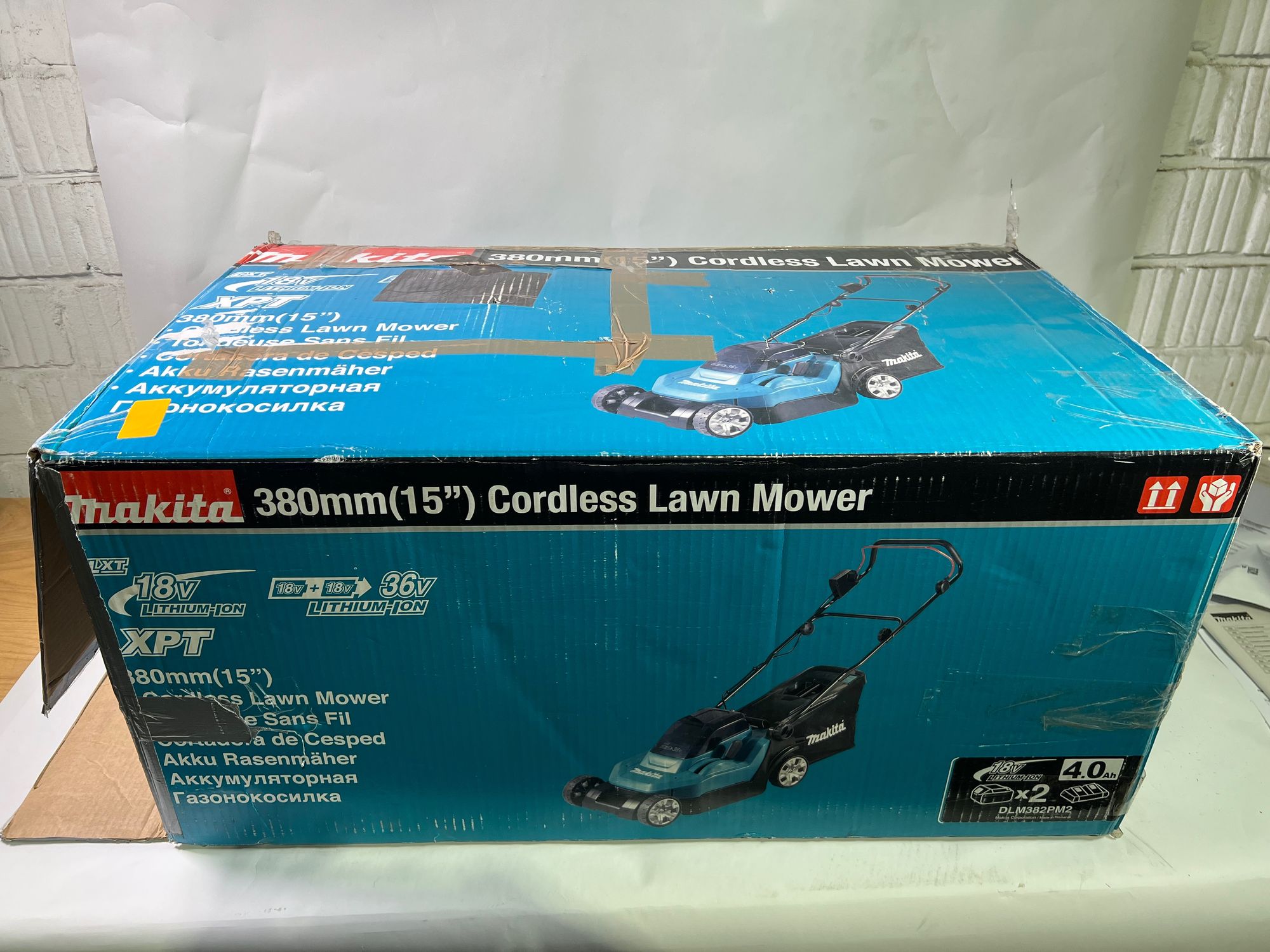 Makita DLM 382 PM2 Akku Rasenmäher 36 V ( 2x 18 V ) 38 cm 40 l + 2x Akku 4,0 Ah + Doppelladegerät - Reparaturgerät