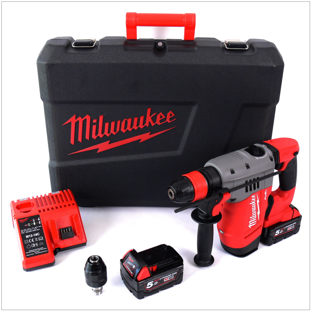Taladro percutor inalámbrico sin escobillas Milwaukee M18 CHPX-502C FUEL con batería 2 x 5 Ah, cargador, maletín