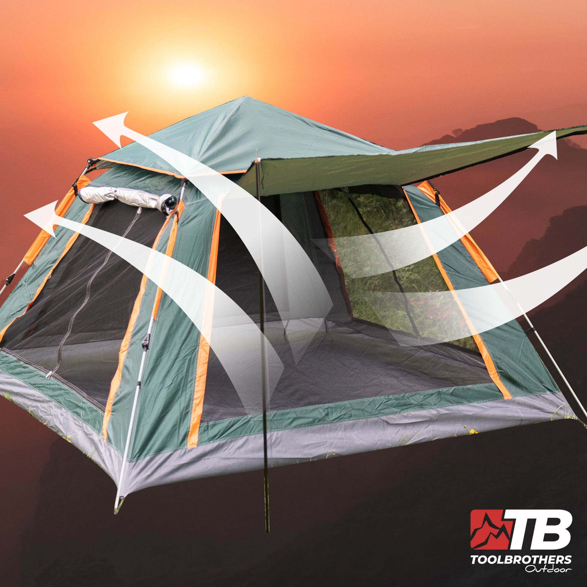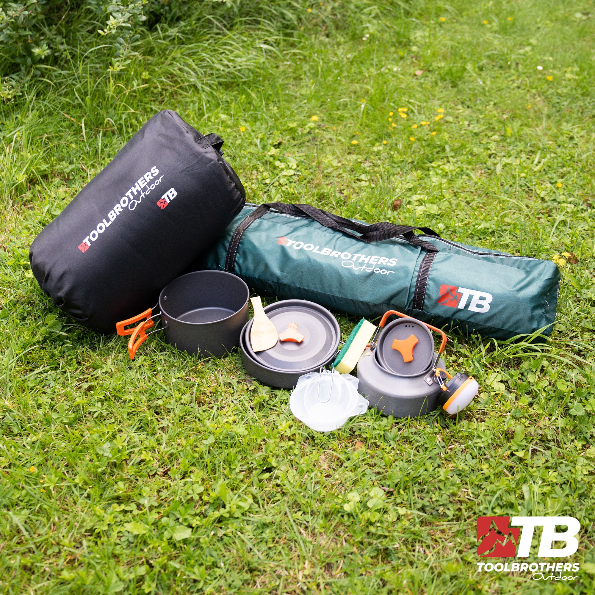 Zestaw kempingowy Toolbrothers to wysokiej jakości zestaw, Zawiera wybór produktów zaprojektowanych z myślą o wygodnym biwakowaniu, Namiot kempingowy Toolbrothers jest specjalnie zaprojektowany do użytku na zewnątrz. Może pomieścić 2-4 osoby i jest idealny na wycieczki kempingowe lub inne przygody na świeżym powietrzu, namiot jest wykonany z wodoodpornej tkaniny 210D Oxford, która zapewnia niezawodną i długotrwałą wodoodporność. ponadto górna pokrywa jest odporna na rosę, aby zapewnić dodatkową ochronę przed wilgocią. namiot ma 360-stopniową wentylację, która zapewnia optymalną cyrkulację powietrza. Jest to szczególnie ważne, aby zminimalizować tworzenie się kondensatu wewnątrz namiotu i stworzyć przyjemny klimat wewnątrz. Szczeliny wentylacyjne można otwierać lub zamykać w zależności od aktualnych warunków pogodowych i osobistych preferencji, a namiot jest wyposażony w moskitierę, która chroni przed irytującymi owadami i pozwala spać bez zakłóceń.