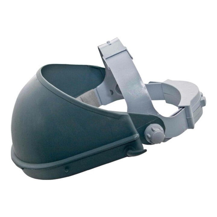 z ochroną czoła - indywidualnie regulowane i wygodne podparcie głowy - ochrona czoła rozciąga się daleko nad głową i jest wykonana z wysokiej jakości polipropylenu - tarcze ochronne są przymocowane do ochrony czoła za pomocą mimośrodowego przełącznika i można je złożyć - szerokość głowy regulowana w zakresie 50-60 cm za pomocą pokrętła, wysokość głowy można regulować za pomocą perforowanego paska