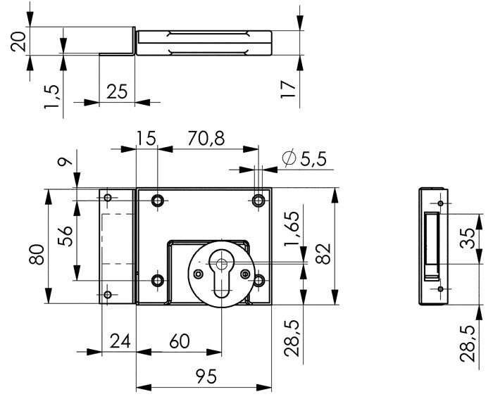AMF cerradura de pestillo 49 ( 3311021059 ) DIN izquierda / derecha BB backset 60 mm