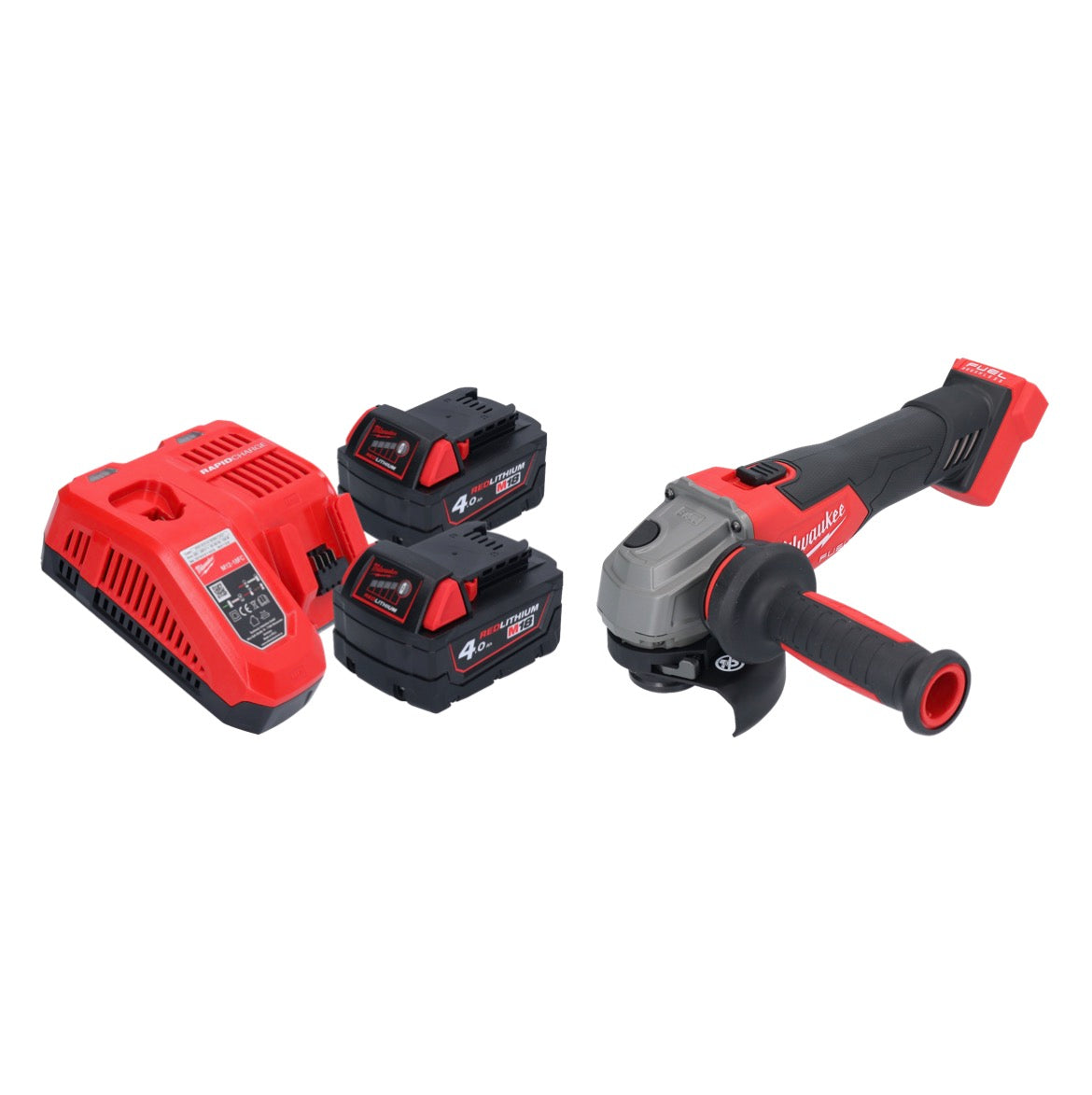 Amoladora angular a batería Milwaukee M18 FSAG115X-402 18 V 115 mm sin escobillas + 2 baterías de 4,0 Ah + cargador