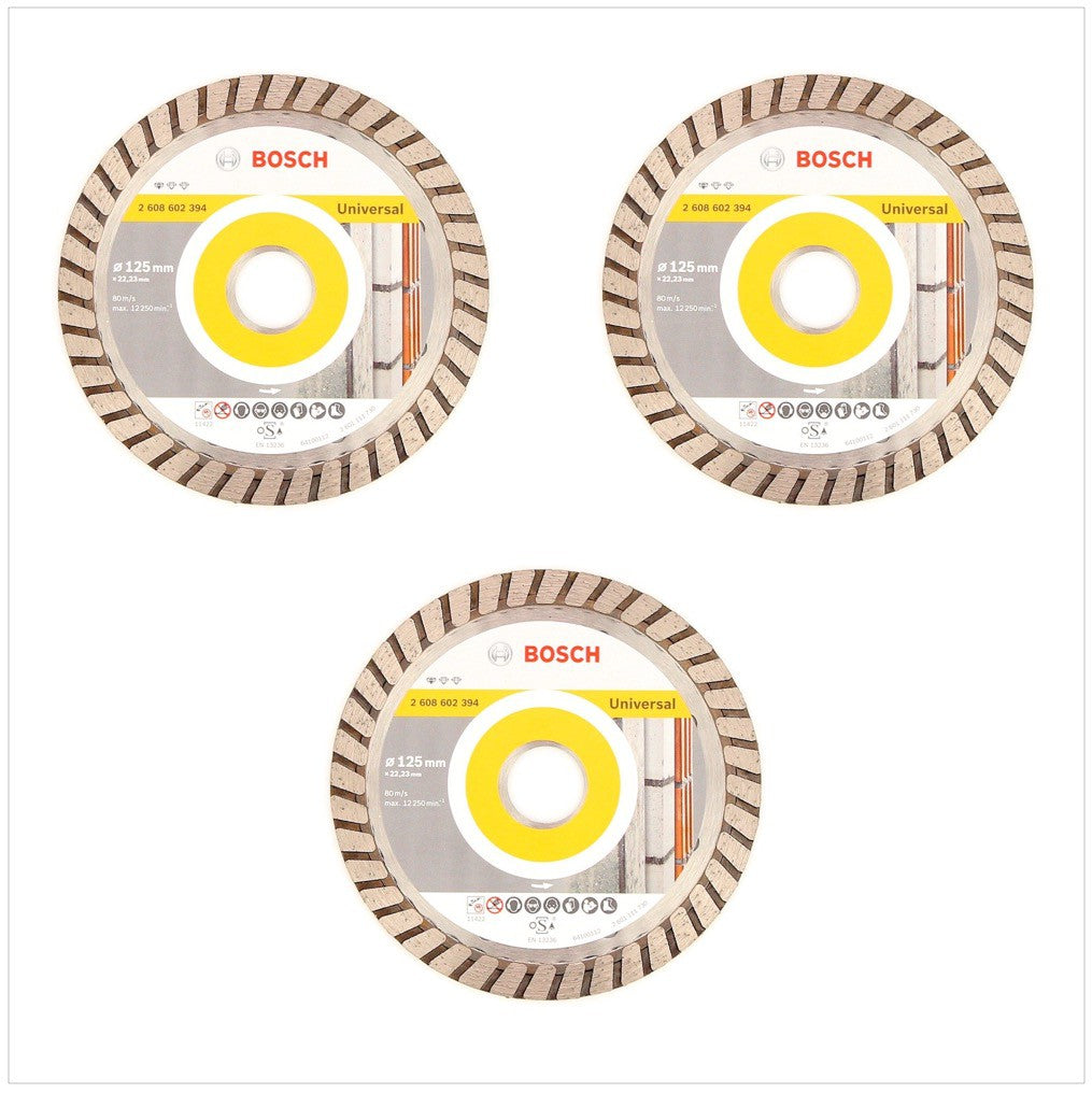 Disco de corte de diamante turbo universal estándar Bosch 125 mm 3 piezas (3x 2608602394) soporte para hormigón 22,23 mm