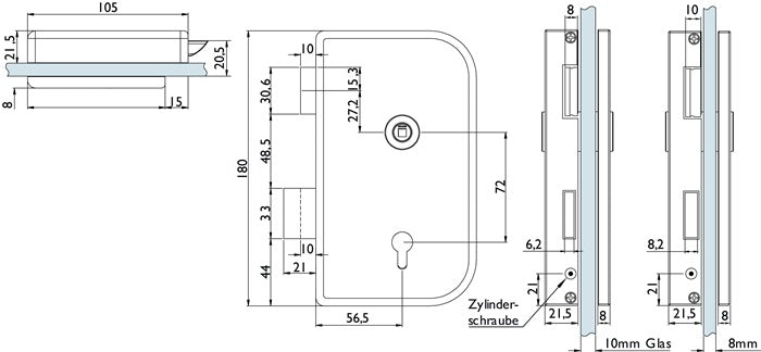 Cerradura HERMAT para puerta de cristal 6033 PZ L - Roma acero inoxidable mate ( 3000253945 )