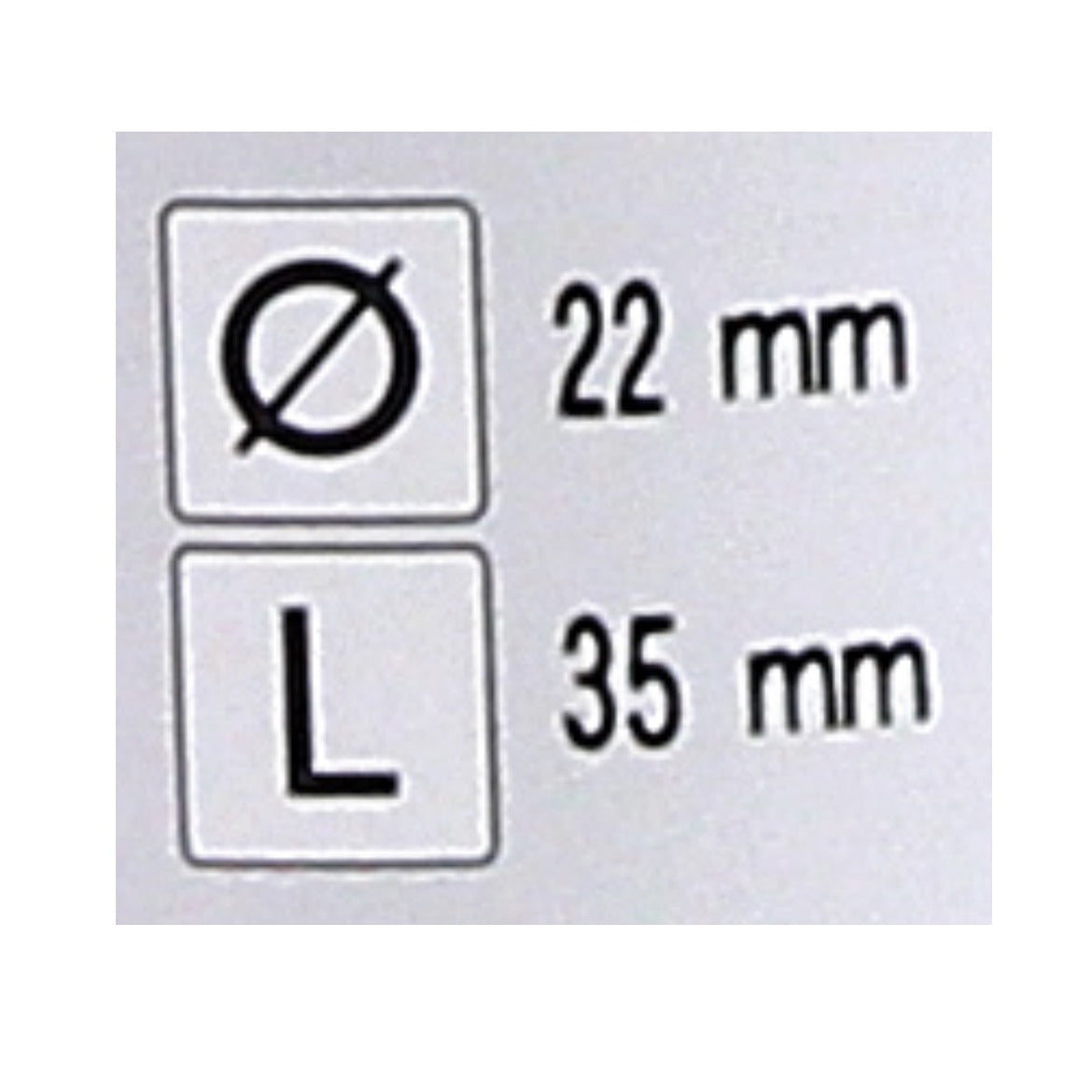 La corona perforadora FEIN HM con alojamiento QuickIN tiene un diámetro de 22 mm y una longitud de 35 mm. Tiene un excelente rendimiento de corte y una profundidad de corte de 35 mm.
