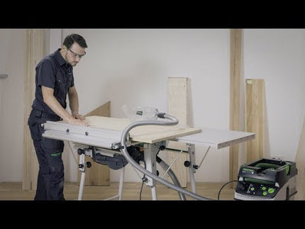 La sierra de mesa CS 70 EG PRECISIO de Festool es un verdadero todoterreno para el diseño de interiores, la construcción de muebles y la construcción de ferias. La altura de corte es de 70 mm y, por tanto, garantiza aún más versatilidad. Se consiguen perfectamente cortes transversales de hasta 320 mm de ancho y cortes longitudinales de hasta una altura de corte de 70 mm. Gracias a la hoja de sierra pivotante son posibles cortes en ángulo de -2° a +45°. Gracias a los 2200 W, la sierra de mesa alcanza un rendimiento de corte al más alto nivel, incluso en materiales más duros. El motor encapsulado en polvo evita que la máquina sea destruida, por ejemplo, por virutas de aluminio. El peso reducido y las funciones inteligentes hacen de la sierra un milagro de montaje. El PRECISIO tiene un mango multifuncional con controles de encendido y apagado, ajuste de velocidad, accionamiento corto, apagado rápido y mecanismo de tracción. El mango está diseñado ergonómicamente para que el trabajo prolongado sea fácil de usar y no daña las articulaciones. El cambio rápido de secciones longitudinales a transversales no supone ningún problema gracias al tope angular. El sistema de conexión CLEANTEC garantiza una sujeción segura de la manguera de aspiración y es compatible con todos los aspiradores móviles Sandard de Festool, lo que garantiza un trabajo sin polvo. El sofisticado sistema electrónico MMC (Multi-Material-Control) garantiza un trabajo seguro y adaptado al material gracias a la velocidad ajustable y constante, así como al control de la temperatura. La ranura en la mesa de la sierra proporciona una fijación segura de las piezas de trabajo, por lo que ya no es posible que se deslicen. La función FastFix permite cambiar la hoja de sierra de forma rápida y sencilla. El freno rápido garantiza un trabajo seguro al cepillar, serrar y fresar. El sistema de fijación ofrece mayor anchura y longitud para procesar piezas de trabajo grandes. Gracias a las ruedas de transporte con protección contra dobleces, PRECISIO es móvil y se puede utilizar de forma flexible. En el compartimento para accesorios integrado tendrá siempre a mano la cubierta protectora, el tope angular y el bastón de empuje.