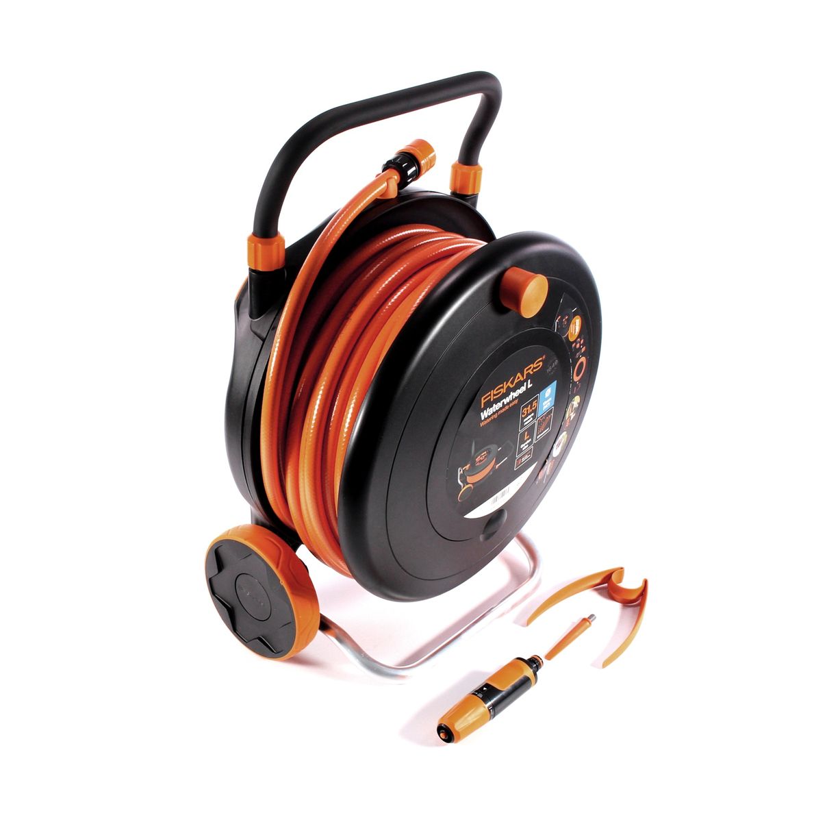 Carro portamanguera Fiskars rueda hidráulica L 30 m manguera (1023644) + accesorios