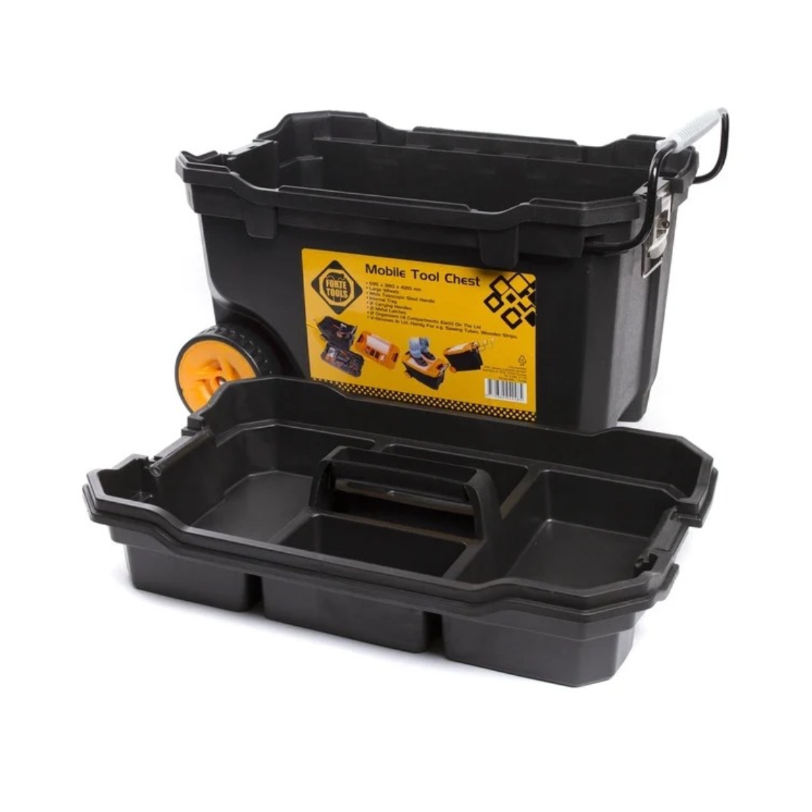 Caja de montaje móvil Forte Tools, caja de herramientas con ruedas grande en 59,5 x 42 x 38 cm robusta con cierre metálico y organizador extraíble (000051144574)