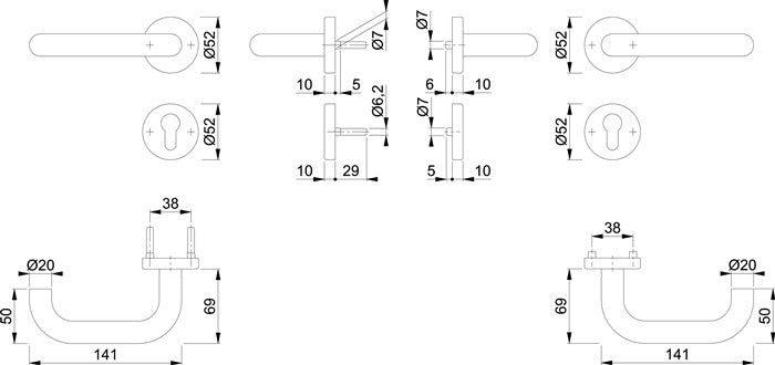 Juego de protección contra incendios HOPPE París FS-E138/42H/42HS acero inoxidable de montaje en superficie F69 D/D ( 3000203110 )