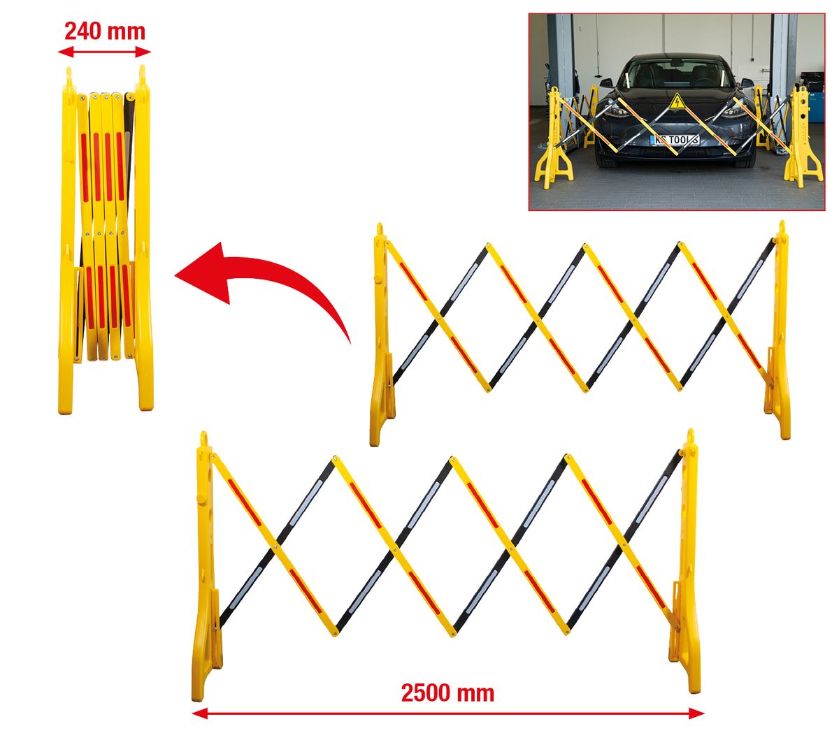 KS TOOLS Barrera de tijera de plástico, 240 - 2500 mm, 2 pzs ( 117.1545 )