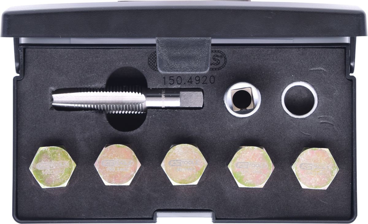 KS TOOLS Juego de roscas reparadoras del tornillo de purga de aceite, 12 pzs M14x1,5 ( 150.4920 )