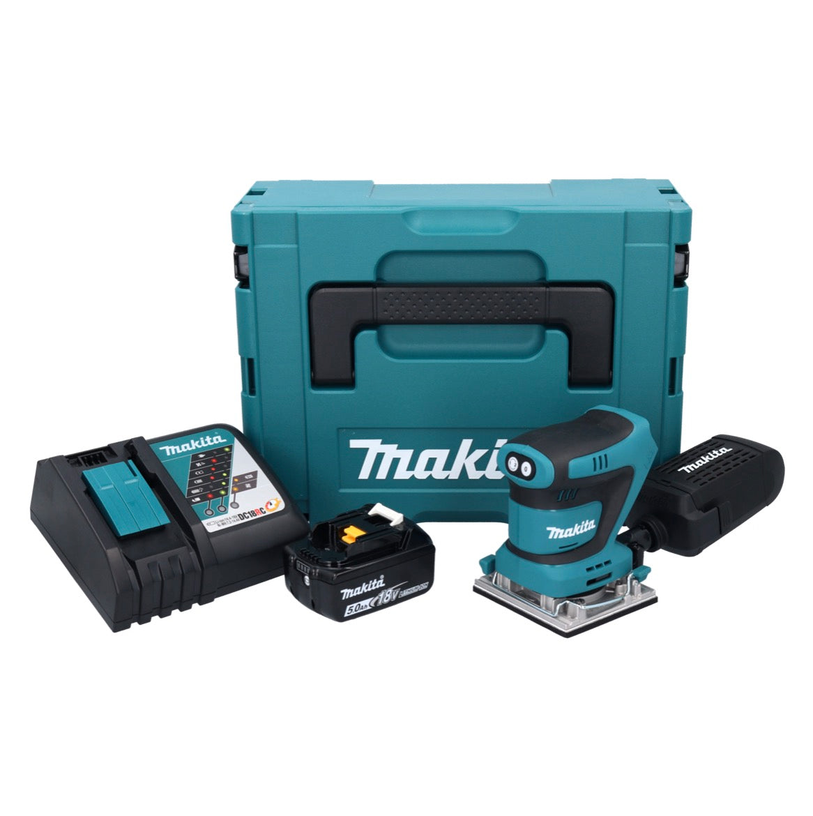 Lijadora vibratoria Makita DBO482RT1J sin cable 112x102mm 18V + 1x Batería 5.0Ah + Cargador + Maletín Makpac