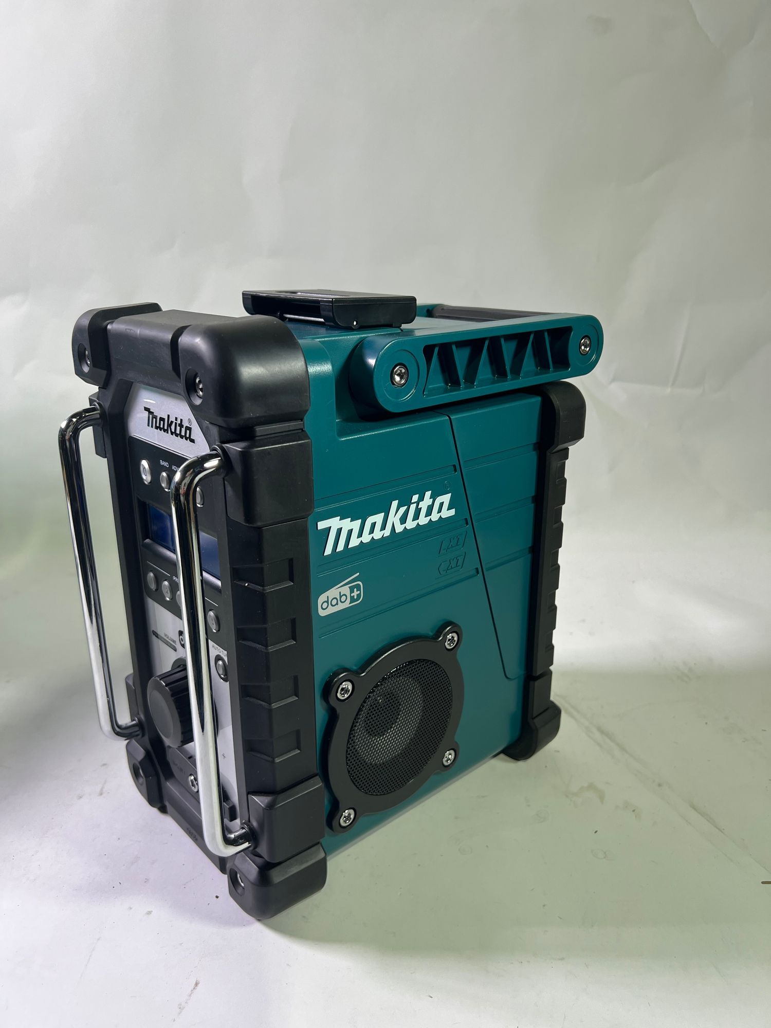 Das Makita DMR 110 N Akku Baustellenradio ist ein zuverlässiges und robustes Radio, das speziell für den Einsatz auf Baustellen entwickelt wurde. Es bietet UKW- und DAB/DAB+-Empfang, sodass Sie sowohl analoge als auch digitale Radiosender in bester Qualität hören können. Das Radio ist kompatibel mit Li-Ionen-Akkus der Serien 10,8 V, CXT und LXT, kann aber auch mit einem Netzadapter betrieben werden. NiCd/NiMH-Akkus und Akkus der Maktec/G-Serie sind nicht verwendbar. Dank der IP64-Zertifizierung ist das Radio gegen Spritzwasser geschützt und somit ideal für raue Umgebungen. Die automatische Abstimmung ermöglicht eine einfache Senderwahl, mit der Option, bis zu 5 Sender zu speichern. Mit Stereo-Lautsprechern sorgt das Baustellenradio für klaren, satten Sound. Die gummierte Ummantelung schützt das Gerät vor Stößen und Beschädigungen, und über den Klinkeneingang auf der Vorderseite können externe Geräte angeschlossen werden.