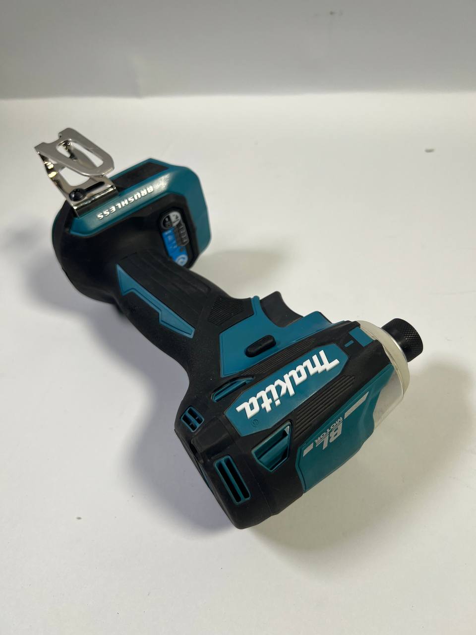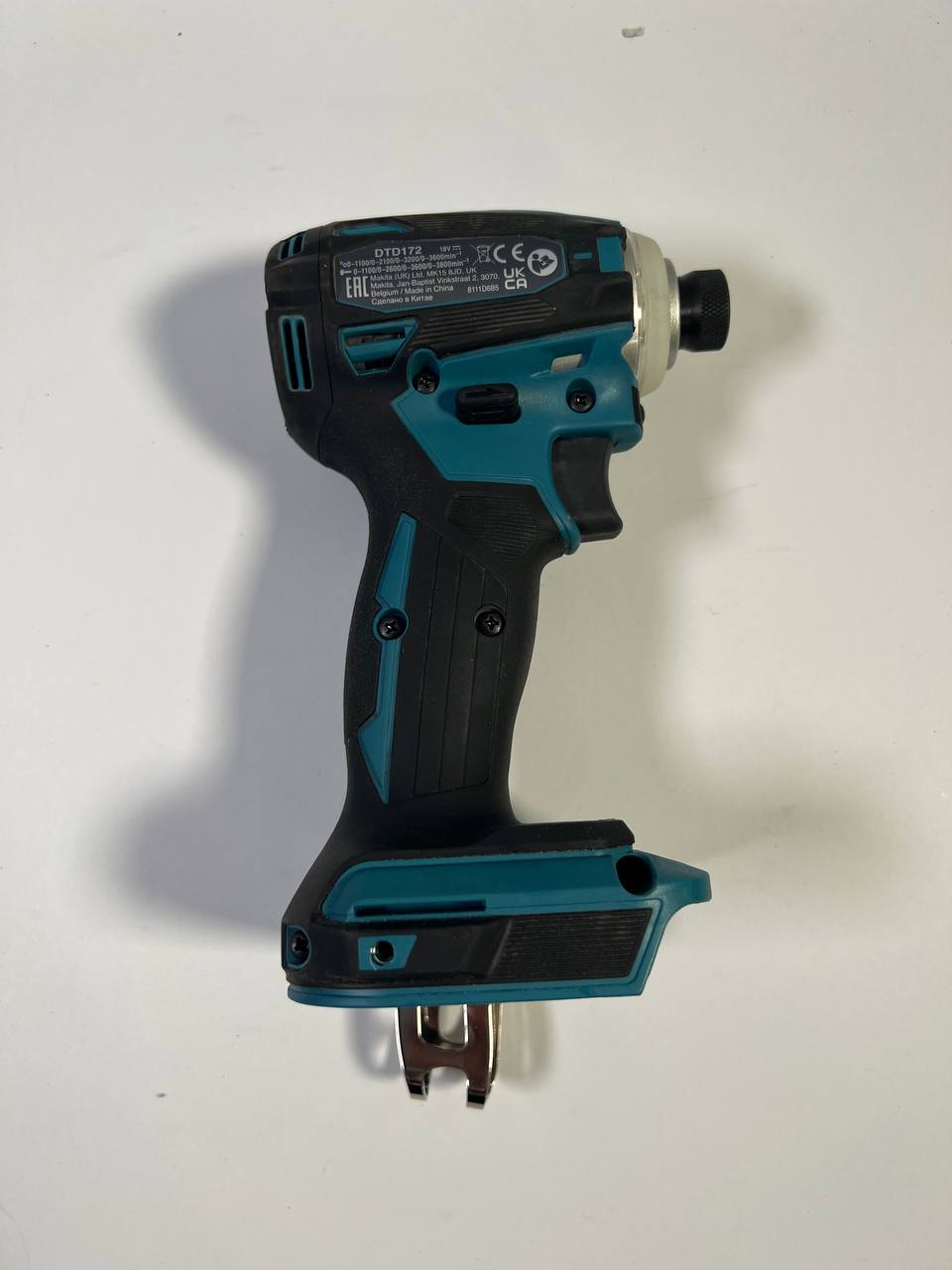 La DTD 172 de Makita es una llave de impacto inalámbrica extremadamente compacta y ligera con un vástago de 1/4". Gracias a su nuevo sistema de montaje de puntas con un solo toque, es especialmente fácil de usar. Con un par de apriete máximo de 180 Nm, es ideal para atornillar de forma rápida y eficaz. Una característica especial de la DTD 172 es la brillante luz de trabajo LED, que no sólo ilumina perfectamente la superficie de trabajo, sino que también puede utilizarse como lámpara de mano. Así siempre tendrá una visión perfecta de su trabajo. Gracias al mango de goma, la llave de impacto se adapta cómodamente a la mano, lo que facilita el trabajo. El nuevo botón de cambio rápido situado justo encima del interruptor permite cambiar rápidamente entre el modo registrado y el modo de aplicación actual. También se ha mejorado el portapuntas. Dos rodamientos de bolas mantienen la broca en su sitio y reducen los molestos bamboleos. El motor sin escobillas de la llave de impacto adapta eficazmente el par y la velocidad a las necesidades cambiantes. Otra ventaja de la DTD 172 de Makita es la protección contra descarga profunda. La herramienta se desconecta automáticamente cuando la batería está casi vacía. Esto garantiza una larga vida útil de la batería.