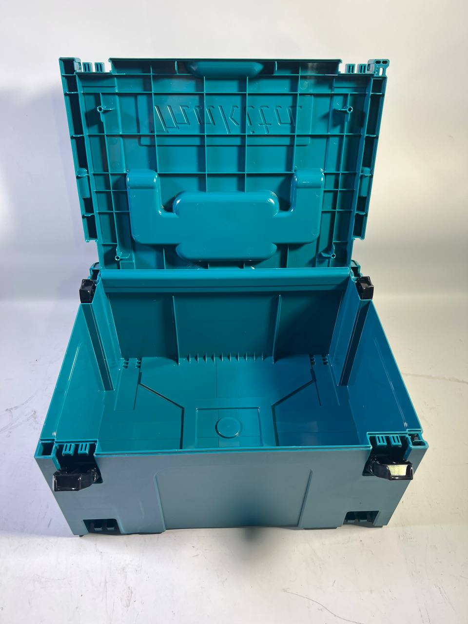 Der Makita MAKPAC 3 Kunstoffkoffer ist sehr robust und hat die Möglichkeit durch eine Einlage ergänzt zu werden (Einlage nicht im Lieferumfang enthalten). Er ist mit zwei Schnappverschlüssen und mit einem Tragegriff ausgestattet. Des weiteren sind alle MAKPAC Koffer und MAKPAC Organizer untereinander stapelbar und lassen sich mit den Schnappverschlüssen miteinander verbinden, um für Stabilität beim Transport zu sorgen.
