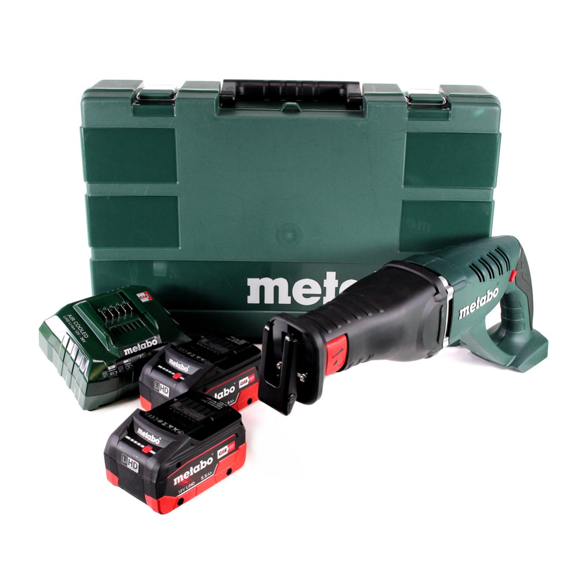 La herramienta eléctrica es adecuada para serrar madera, metales, plásticos o materiales similares como caucho duro, fibra de vidrio, etc. La sierra de sable a batería tiene una robusta carcasa del engranaje de fundición a presión de aluminio y está cubierta para un manejo óptimo. El Metabo Quick System integrado garantiza que la hoja de sierra se pueda cambiar rápidamente y sin herramientas. La hoja de sierra se puede girar 180° y, en combinación con una batería ligera, es ideal para trabajos cómodos por encima de la cabeza. La sierra alternativa incluye un tope de profundidad ajustable para un uso óptimo de la hoja de sierra y aplicaciones versátiles como cortes de inmersión. La gama coordinada del programa de hojas de sierra de Metabo permite una gran variedad de usos para la sierra. Gracias a la nueva tecnología LiHD, Metabo es el único fabricante del mundo que cubre todo el rango de potencia, de 400 a 3200 vatios. Aplicaciones que antes solo estaban reservadas a los aparatos más potentes ahora son posibles de forma inalámbrica gracias a la batería de 5,5 Ah. La combinación de nuevas celdas de alto rendimiento y componentes completamente nuevos de la batería LiHD garantiza el máximo rendimiento y un uso extremadamente prolongado con un desarrollo mínimo de temperatura. La interacción de tecnologías coordinadas, como la gestión inteligente de las baterías y la monitorización electrónica permanente de cada celda, garantiza una vida útil especialmente larga de las baterías. La indicación de capacidad integrada permite controlar permanentemente el estado de llenado. La protección óptima contra la contaminación interna, el revestimiento protector completo de la electrónica y el sellado óptimo en la construcción de la tapa garantizan una larga vida útil con una autodescarga muy baja. El revestimiento exterior de goma de la batería garantiza un soporte seguro y antideslizante y también sirve como protección contra golpes. La compatibilidad 100% con todas las máquinas de 18 V y cargadores de los socios CAS (Cordless Alliance System): Rothenberger, Edding, Fischer, Mafell, Collomix, Eibenstock, Eisenblattt, Haaga, Starmix, Steine, Rokamat, Birchmeier hace que la batería sea una batería para todo. El cargador es adecuado para cargar todas las baterías de Li-Ion y LiHD para asientos deslizantes (12V-36V) con una corriente de carga de batería adaptada de Metabo. Este accesorio es un modelo sucesor del ASC 30-36 (685132000). La refrigeración patentada de la batería AIR COOLED garantiza tiempos de carga significativamente reducidos durante la carga. La gestión de carga inteligente controlada por el procesador garantiza una carga suave y un número máximo de ciclos de carga. La ventaja especial de este cargador es su idoneidad para cargar todos los paquetes de baterías de los socios CAS (Cordless Alliance System): Rothenberger, Edding, Fischer, Mafell, Collomix, Eibenstock, Eisenblattt, Haaga, Starmix, Steine, Rokamat, Birchmeier. Un cargador para todo.