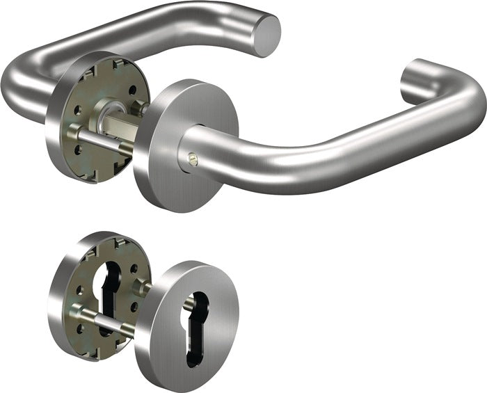 Juego de rosetas cortafuegos · DIN izquierda / derecha · Cuadrado 9 mm · Juego de manillas = juego de manillas en ambos lados / juego intercambiable = pomo exterior 3020 · para espesor de puerta 38-63 mm Entregado como juego completo