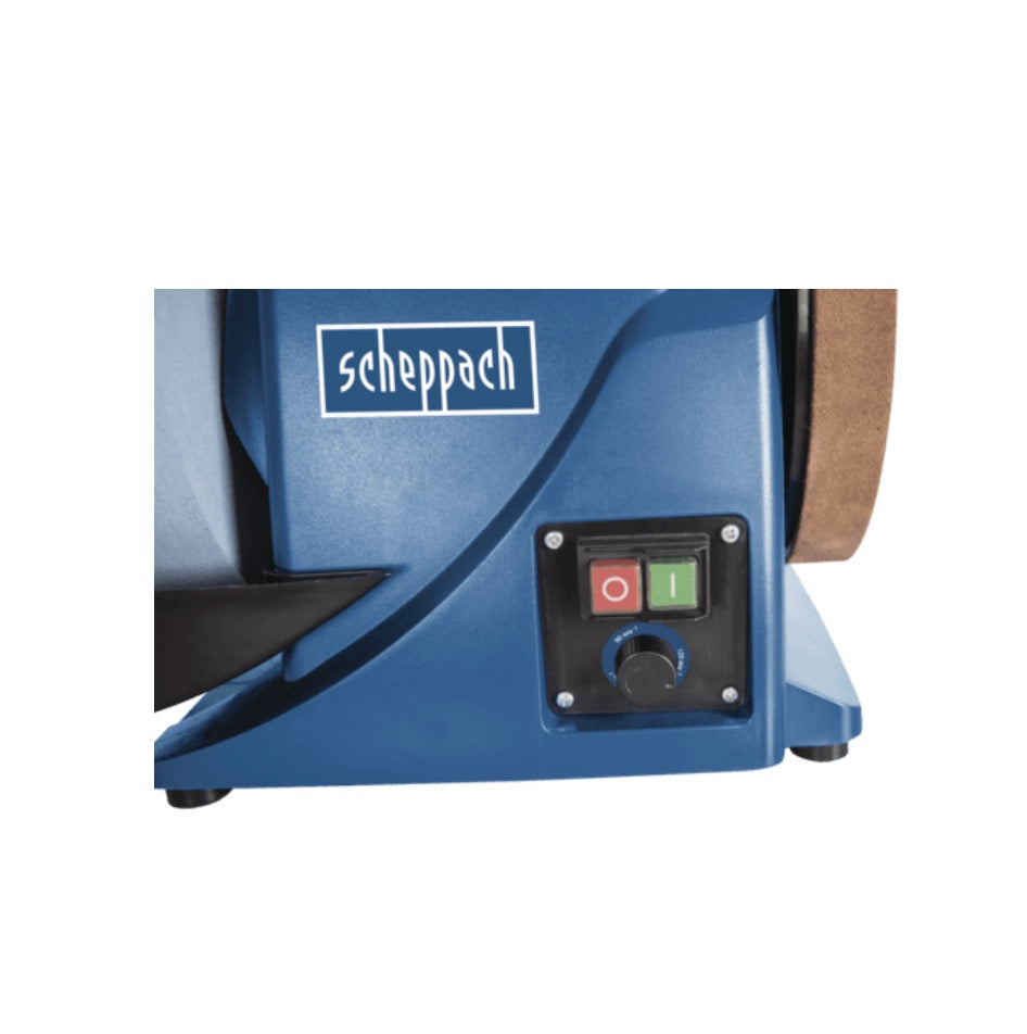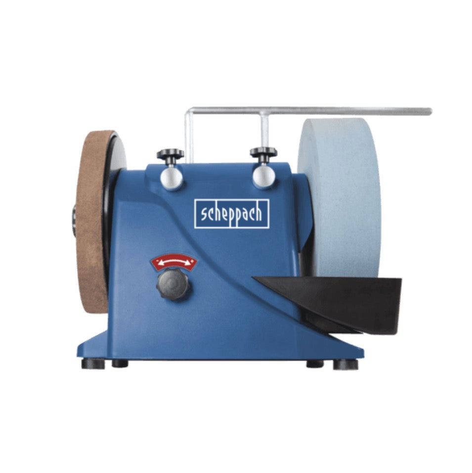 El sistema de lijado en húmedo Scheppach Tiger 300 VS es el compañero ideal para todo profesional. Gracias a la función Vario Speed ​​incorporada, la velocidad se puede ajustar según sea necesario. Esto asegura excelentes resultados y el usuario disfruta del dispositivo. El motor ha sido diseñado para emitir menos vibraciones gracias a la tecnología de inducción. Gracias a la refrigeración por agua se garantiza una larga vida útil y buenos resultados de rectificado. Una gran superficie de apoyo de la piedra de amolar de 63 mm y un diámetro de 250 mm ofrecen una larga vida útil y una amplia gama de materiales a moler. Una piedra de amolar especial de óxido de aluminio ofrece resultados de amolado perfectos incluso en acero duro de más de 60 HRC. Gracias al medidor de ángulos, no se puede perder el ángulo de rectificado correcto. Además, el depósito de agua incorporado es irrompible. Scheppach es conocido por sus buenos conceptos y su sofisticada tecnología.