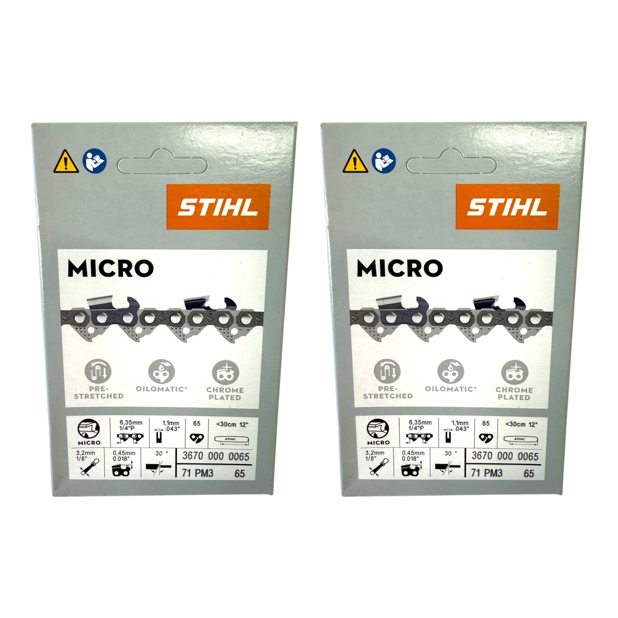Stihl 2x 1/4" Picco Micro 3 (PM3) cadena de sierra 30 cm 1/4" P 1.1 mm 65 TG 2 piezas ( 2x 36700000065 )