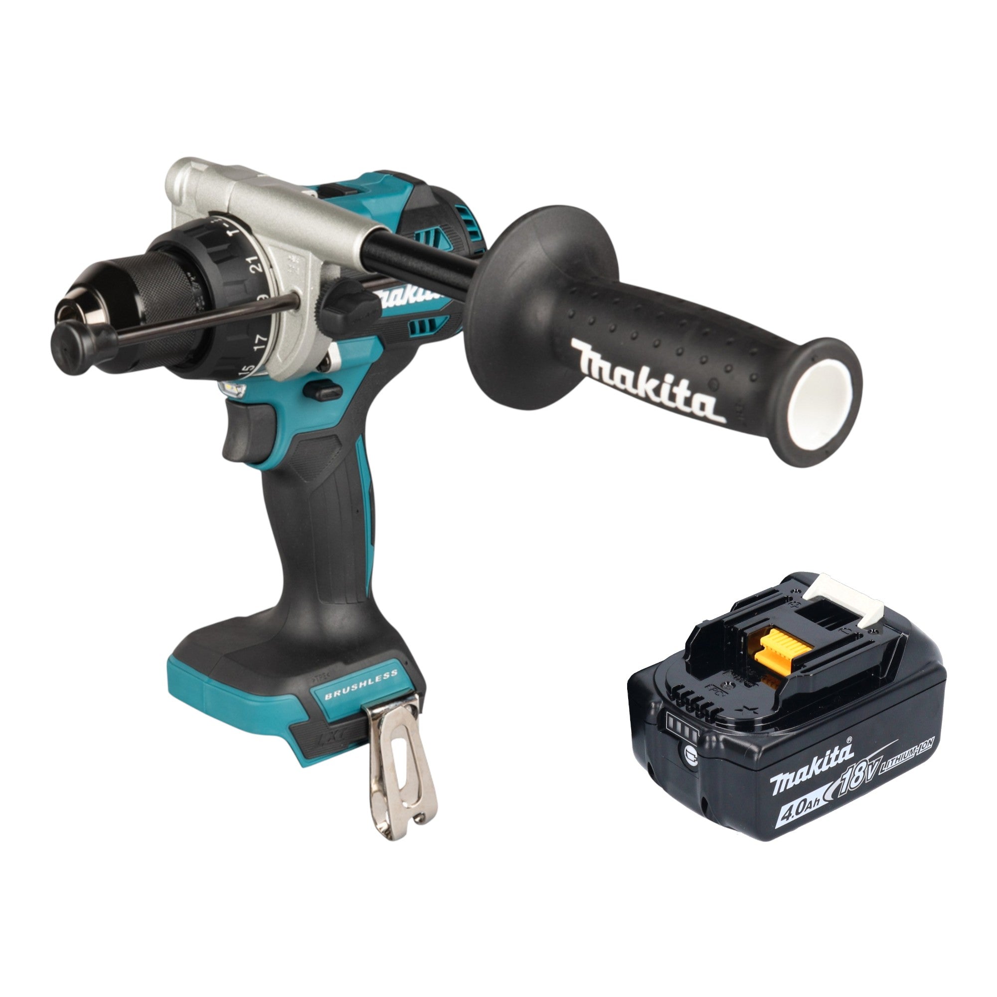 El taladro atornillador de impacto a batería Makita DHP 492 es una máquina potente y compacta para uso profesional. Con 18 voltios y un motor sin escobillas, convence por su alta eficiencia y durabilidad. El mecanismo de percusión conmutable permite trabajar de forma flexible según la aplicación. Con un par máximo de 141 Nm, así como 130 Nm en tornillos duros y 65 Nm en tornillos blandos, ofrece suficientes reservas de potencia para tareas exigentes. El par se puede ajustar con precisión en 21 niveles, más el nivel de taladrado. El equipamiento incluye un robusto portabrocas metálico de sujeción rápida, una empuñadura lateral para un mejor control y un potente doble LED con función de preiluminación y posiluminación para una visibilidad óptima incluso en zonas de trabajo oscuras. La protección integrada contra descarga profunda apaga automáticamente el aparato cuando la batería está casi agotada, mientras que la protección electrónica contra sobrecargas ofrece una seguridad adicional. Un freno electrónico garantiza la máxima eficiencia y protección del usuario. Gracias a su diseño compacto y ligero, se puede trabajar sin fatiga incluso durante periodos prolongados.