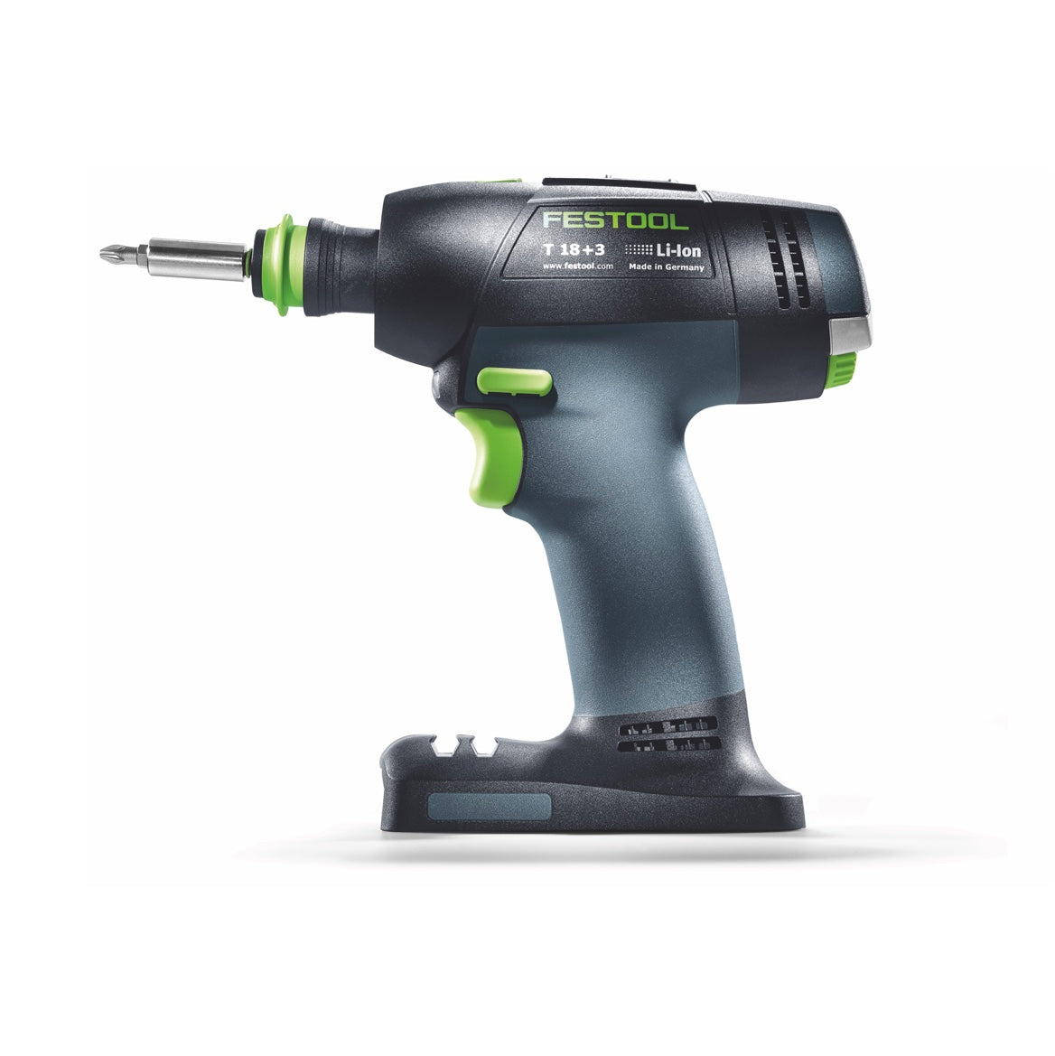 Der Festool T 18+3 Basic Akku Bohrschrauber ist für an Maximum an Flexibilität konzipiert worden. Die vollelektronische Drehmomenteinstellung, der Winkel- und Exzentervorsatz ( nicht im Lieferumfang ), das CENTROTEC Schnellwechselsystem sowie der Tiefenschlag sind die Lösung bei jeder Bohr- oder Schraubanwendung. Für die Langlebigkeit sorgen der bürstenlose EC-TEC Motor, sowie die Kombination aus den Li-High Power Akkus ( nicht im Lieferumfang ). Das leichte Gewicht und das ausdauernde Arbeitsverhalten zeichnen ihn aus. Weitere Raffinessen sind das Umschalten von Schrauben auf Bohren ohne eine Drehmomentverstellung und die FastFix Schnittstelle die ein sekundenschnellen Wechsel der Vorsätze gewährleistet. Dank der kompakten Bauform und dem geringen Gewicht ist er ein Meister in sämtlichen Montagebereichen. Ob Türen, Rückwände, Leisten oder ganze Küchen der Festool T 18+3 Basic Akku Bohrschrauber lässt einen nicht im Stich. Festool steht für höchste Qualitätsansprüche und sehr gut durchdachte Werkzeugkonzepte, der T 18+3 bestätigt dies.