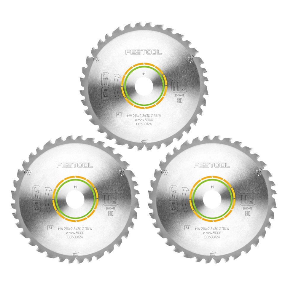 Festool Universal Kreissägeblatt Set 3x HW 216 x 30 x 2,3 mm W36 216 mm 36 Zähne ( 3x 500124 )