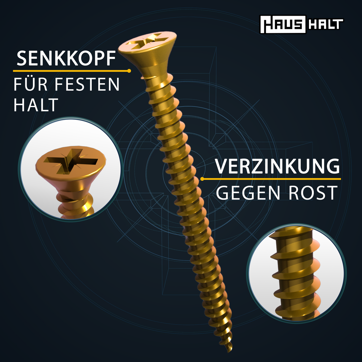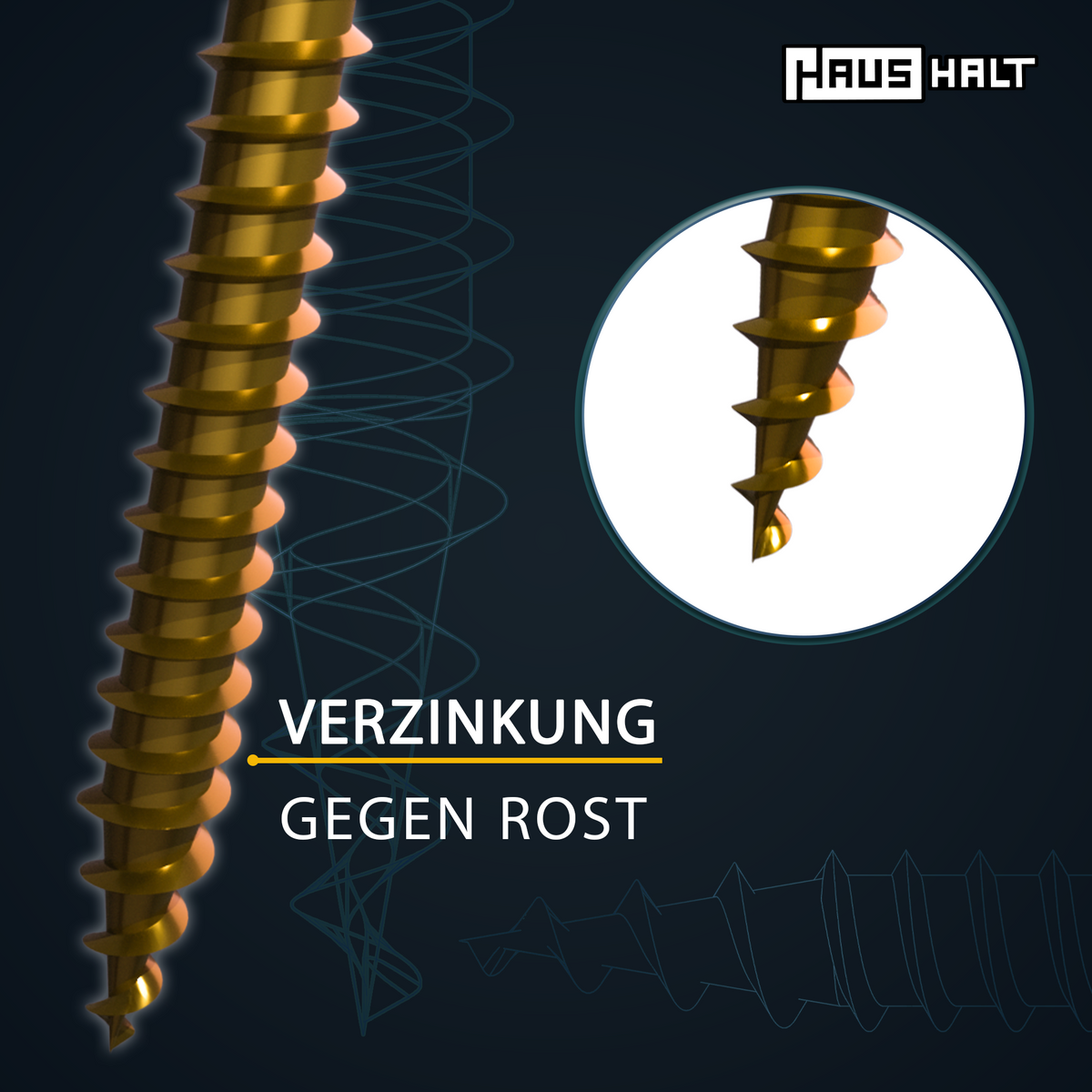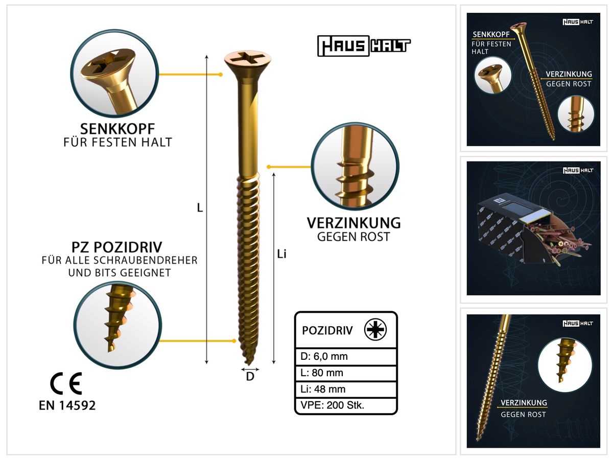 - 200x HausHalt Universal Holzbauschraube Holzschraube 6,0 x 80 mm PZ3