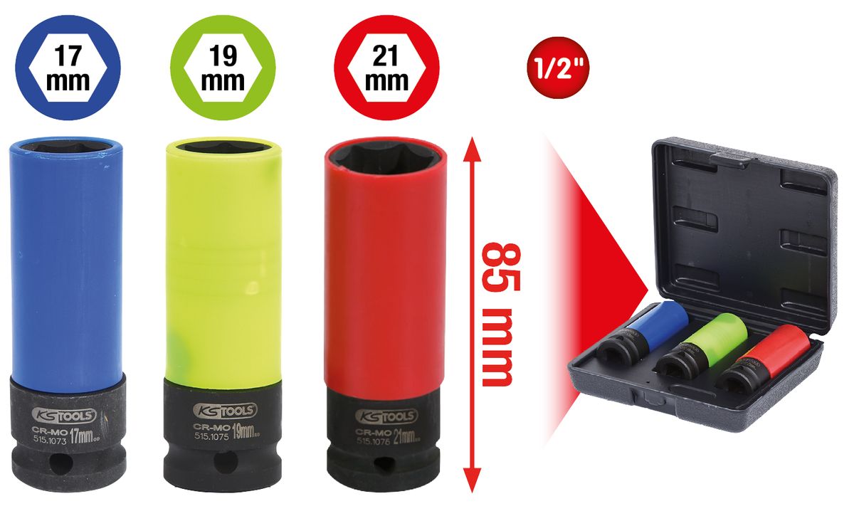 KS TOOLS 1/2" Alu-Felgen Kraft-Stecknuss-Satz robust, 3-tlg ( 515.1070 )