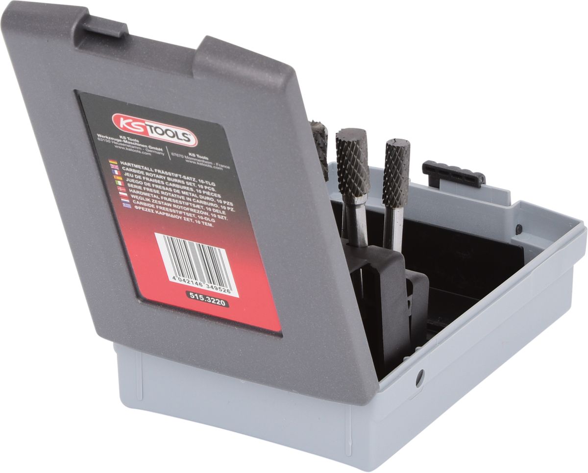 KS TOOLS HM Frässtift-Satz, Kunststoffkassette, 10-tlg ( 515.3220 )