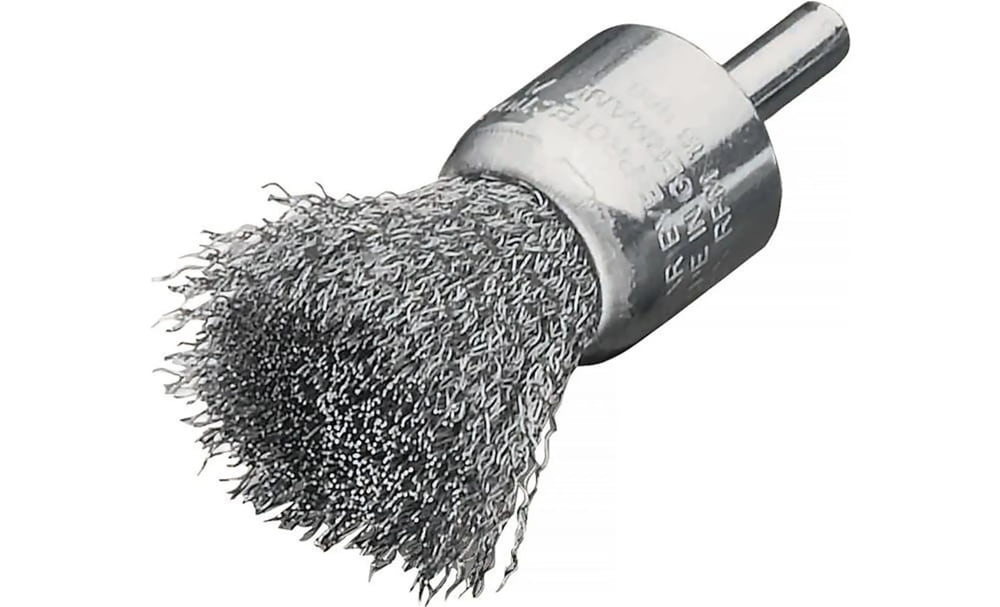 gewellter Draht · universell und flexibel zum Entfernen von Rost, Farbe, Verunreiniugngen, für leichte Entgratarbeiten · Edelstahlbürsten sind zudem geeignet für die Entfernung von Anlassfarben im bei Edelstahlschweißnähten · Schaft-Ø 6 mm