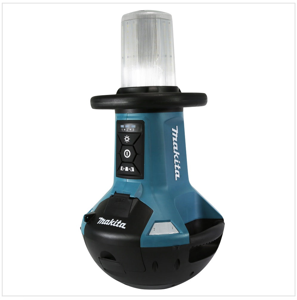 Das DML 810 von Makita ist ein wahlweise mit Akkus oder im Netzbetrieb betriebenes, selbstaufrichtendes LED Flächenlicht. Es verfügt über ein selbstausgleichendes Design, wodurch es sich beim Umfallen selbstständig wieder aufrichtet. Das Flächenlicht kann in 3 verschiedenen Stärken eingeschaltet werden und zwar mit 5500 / 3000 / 1500 Lumen. Weiterhin kann man die Ausrichtung einstellen auf 360°, 180° links und 180° rechts. Ein weiteres Merkmal ist die staub- und wasserabweisende Konstruktion ( Schutzart IP54 ), welche einen Einsatz unter Baustellenbedingungen ermöglicht. Die praktischen Tragegriffe sorgen für eine einfache Handhabung. Makita ist ein führender Hersteller von Elektrowerkzeugen, ein großes 18 V Sortiment und eine hohe Verarbeitungsqualität zeichnen das Unternehmen aus.
