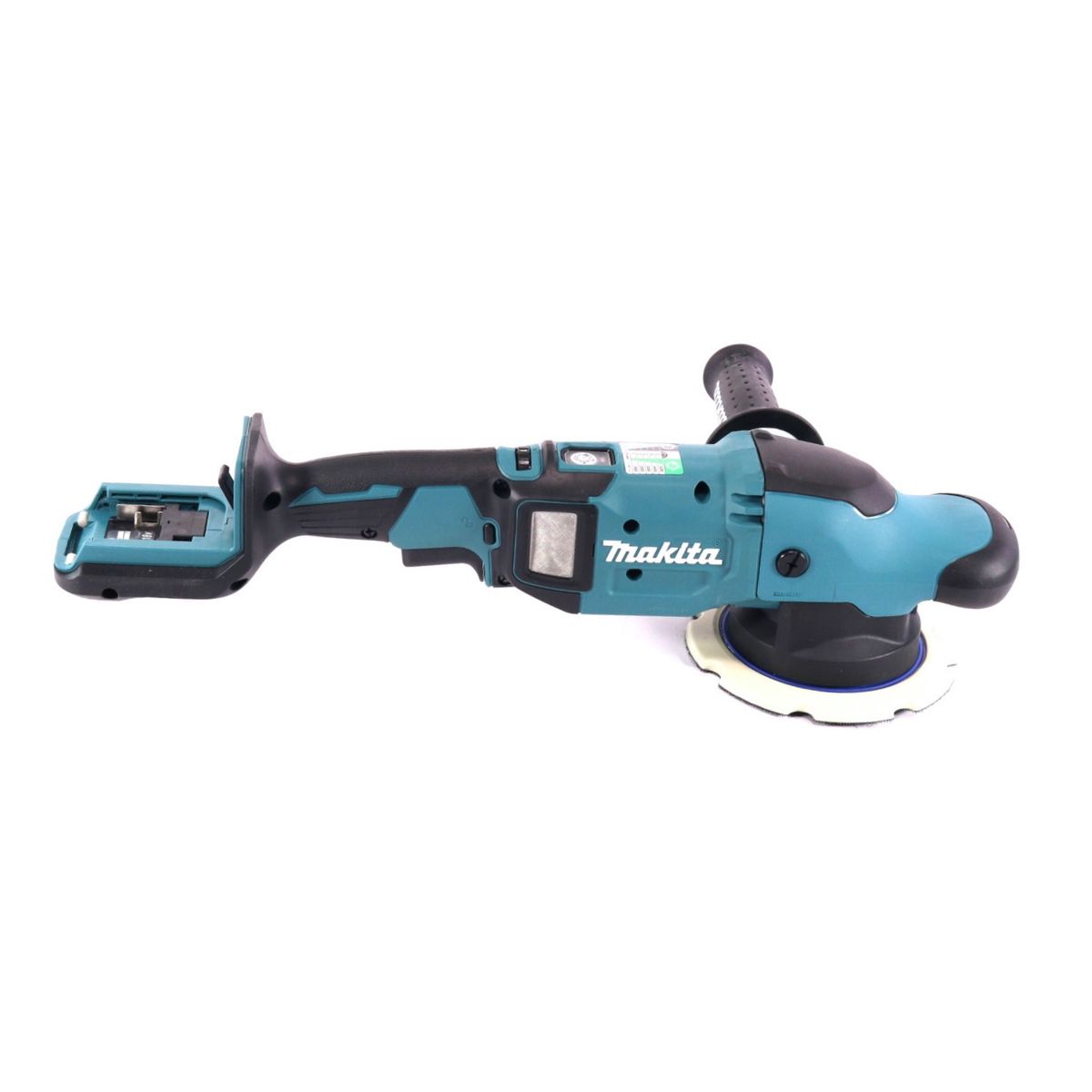 Der DPO 600 von Makita ist ein 18 Volt betriebener, handlicher Exzenterpolierer für den professionellen Einsatz. Der 430 Watt Motor mit Konstantelektronik besitzt zwei Arbeitsmodi; einen mit Exzenterbewegung zum rillenfreien Feinschliff und einen mit Exzenter/Rotationsbewegung zum Grobschliff oder Polierarbeiten. Somit ist er perfekt zur Auto Politur geeignet. Dank der Vibrationsdämpfung weißt er eine hohe Laufruhe auf und lässt somit auch längere Arbeiten ohne körperliche Beschwerden zu. Zusätzlich gibt es die Möglichkeit den Zugschalter für den Dauerbetrieb zu arretieren, wodurch Sie die Maschine entspannter und präziser führen können, was wiederum zu einem besseren Arbeitsergebnis führt. Der optionale Seitenhandgriff erlaubt ergonomisches Arbeiten in beiden Funktionen. Desweiteren schützen die Gummierte Einlagen an den exponierten Gehäuseteilen das Werkstück vor Beschädigungen. Das sehr flache Design gewährleistet eine optimale Handlichkeit und lässt somit auch eine gute Führung an nicht sehr zugänglichen stellen zu. Mit dem 150 mm Klett Schleifteller haben Sie außerdem zugriff auf einen breit gefächerten Zubehörkatalog, um den perfekten Aufsatz für Ihren speziellen Einsatzbereich zu finden. Desweiteren ist der DPO 600 mit der XPT Technologie ( eXtreme Protection Technology ) ausgestattet; was bedeutet, dass der Exzenterpolierer gegen Staub und Spritzwasser geschützt ist und somit auch in feuchteren und staubigeren Umgebungen zum Einsatz kommen kann. Makita ist ein führender Hersteller von Elektrowerkzeugen, eine lange Tradition und höchste Qualitätsansprüche zeichnen das Unternehmen aus.