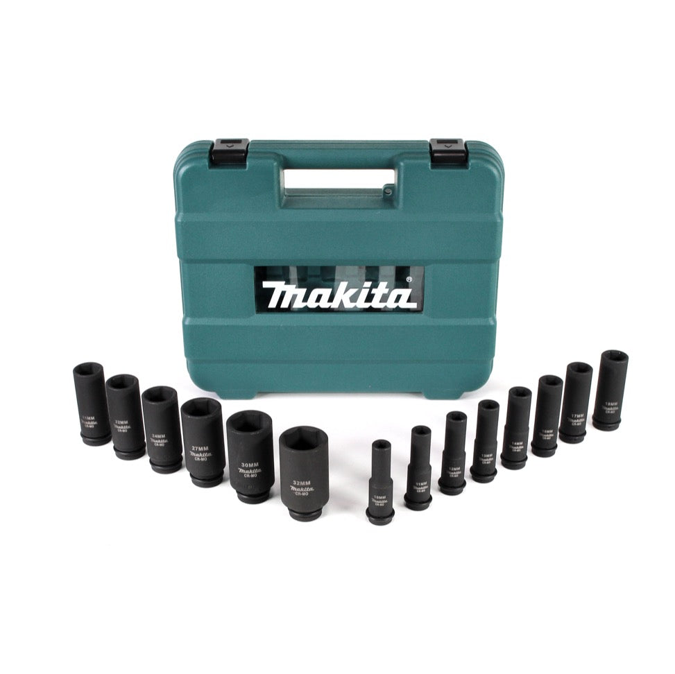 Makita Steckschlüssel Satz 10 - 32 mm 1/2" 14 tlg. + Koffer ( B-52308 ) für Schlagschrauber