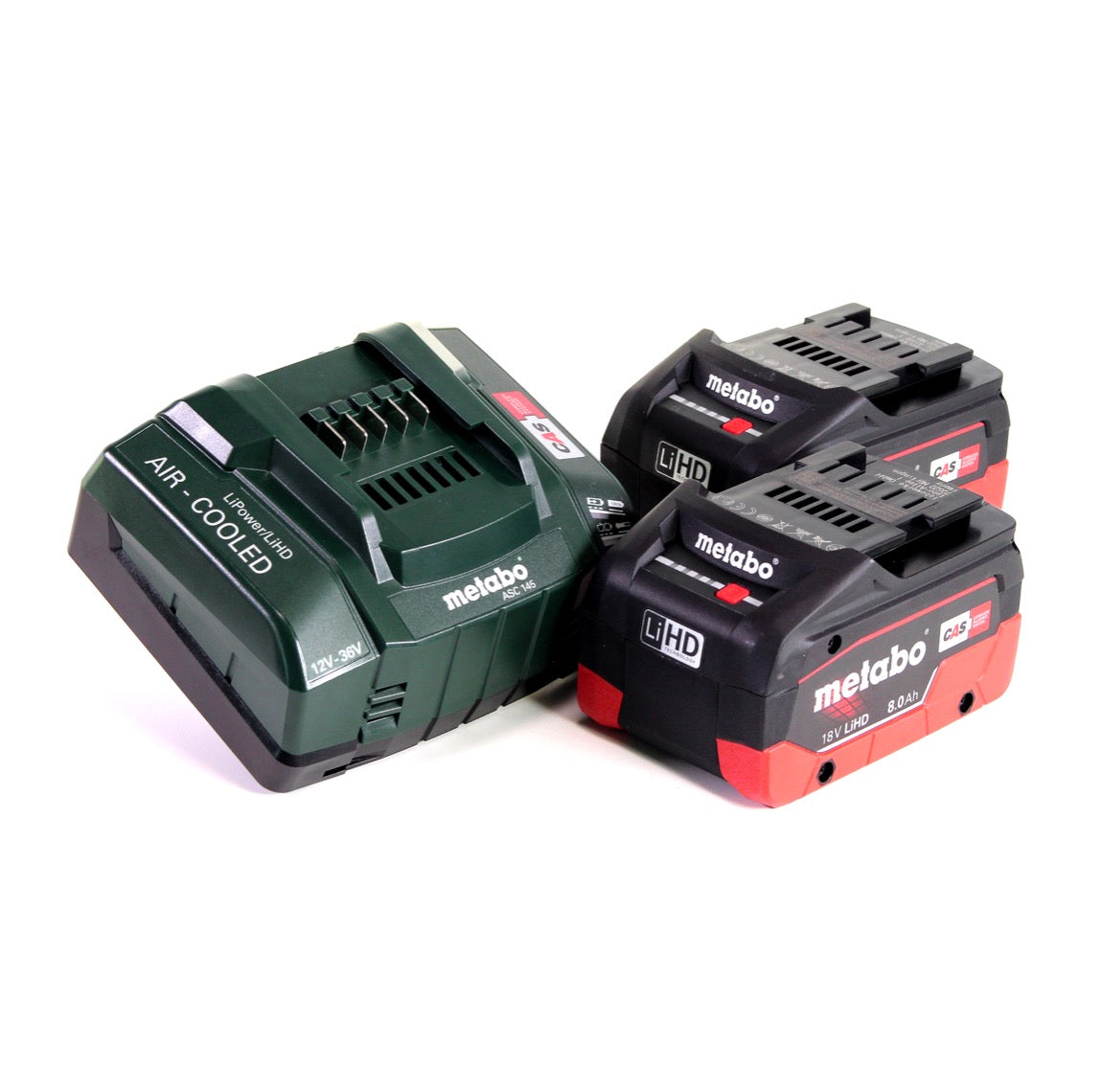 Die Metabo AHS 18-55 V Akku Heckenschere besitzt ein Messer mit spezieller Geometrie für geringen Verschleiß und hat somit 200% längere Standzeit. Durch die beidseitig diamantgeschliffene Messerzähne, führt er saubere Schnitte im Winkel von 30° aus. Das Sicherheits-Untermesser sorgt für hohe Arbeitssicherheit und das Integrierte zweistufig untersetzte Getriebe sorgt für Hohe Schnittleistung. Der Vibrationsarme Lauf und der perfekte ergonomische Softgrip-Handgriff sorgen für angenehmes Arbeiten. Das elektronische Messerschnellstop ( 0,3 Sekunden ) sorgt ebenfalls für Sicherheit. Die Ultra-M-Technologie hält die Leistung im höchsten Stand und sorgt für schonendes Laden. Das LiHD 8,0 Ah Akkupack eignet sich für ultimative Leistung und bei extrem langer Anwendung bei minimaler Temperaturenentwicklung. Zusätzlich enthält es eine Patentierte "AIR COOLED"-Ladetechnologie und eine Permanente elektronische Einzelzellenüberwachung (ESCP) beim Laden, für besonders lange Lebensdauer. Die integrierte Kapazitätsanzeige sorgt für permanente Kontrolle des Füllzustands. Der Akku ist 100% kompatibel zu allen 18 V-Maschinen und Ladegeräten. Partner: Rothenberger, Edding, Fischer, Mafell, Collomix, Eibenstock, Eisenblättert, Haaga, Starmix, Steine, Rokamat, Birchmeier macht den Akku zu einem Akku für alles. Das Ladegerät ist zum Aufladen aller Li-Ion und LiHD Schiebesitz-Akkupacks (12V-36V) mit angepasstem Akku-Ladestrom von Metabo geeignet. Die patentierte AIR COOLED Akkukühlung sorgt beim Laden für deutlich reduzierte Ladezeiten. Das ASC 145 besticht durch eine sehr geringe Stand-by Aufnahmeleistung. Ein intelligentes prozessorgesteuertes Lademanagement sichert das schonende Laden und maximale Anzahl der Ladezyklen. Es handelt sich bei diesem Zubehör um ein Folgemodell des ASC 30-36 ( 685132000 ). Der besondere Vorteil dieses Ladegeräts ist seine Eignung zum Aufladen aller Akkupacks der CAS (Cordless Alliance System) Partner: Rothenberger, Edding, Fischer, Mafell, Collomix, Eibenstock, Eisenblättert, Haaga, Starmix, Steine, Rokamat, Birchmeier.  Ein Ladegerät für alles.