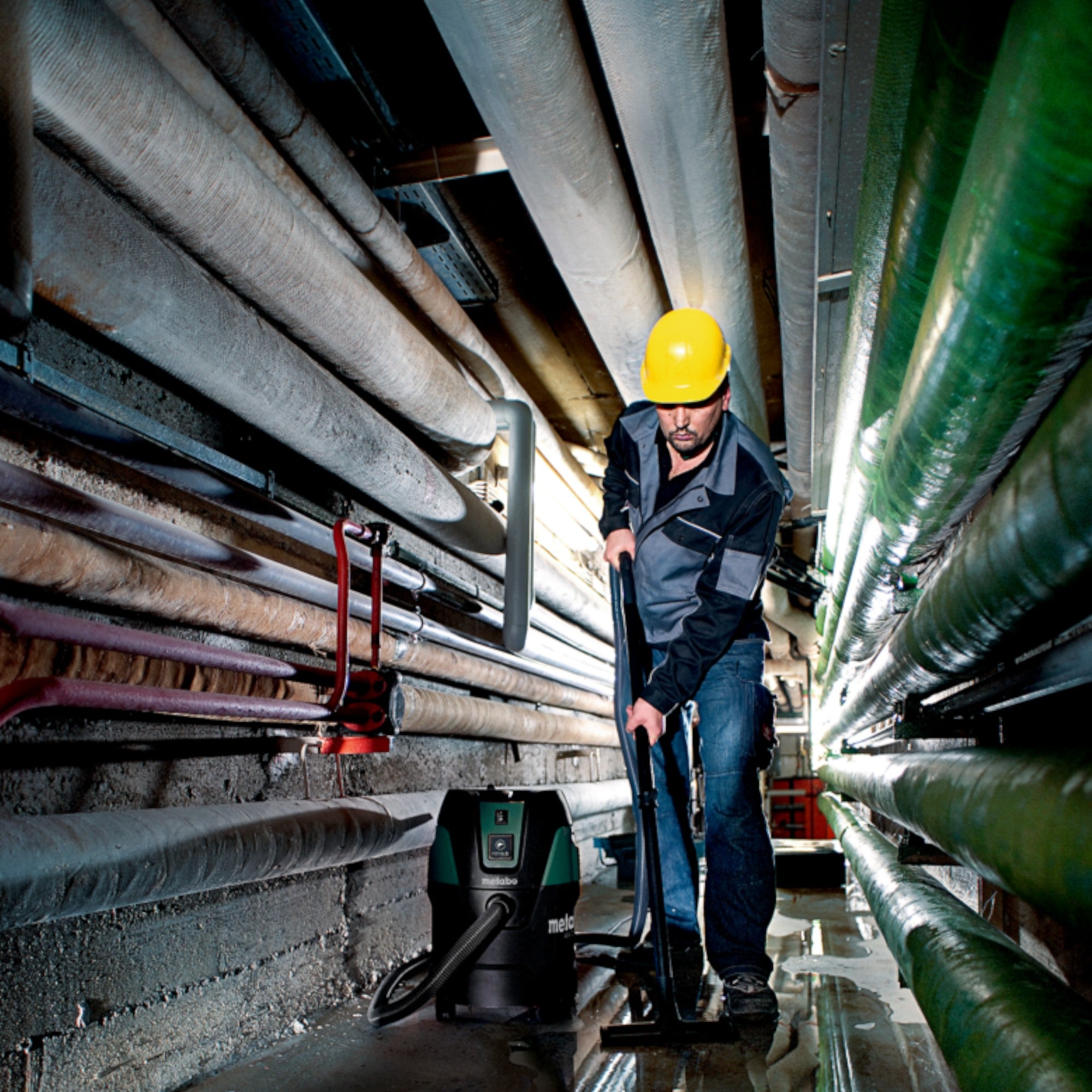 Der Metabo ASA 25 L PC Nass- und Trockensauger ist ein kompakter, leistungsstarker und vielseitiger Profi-Sauger mit gewerblicher Zulassung, ideal für den mobilen Einsatz auf Baustellen, in Werkstätten oder bei Reinigungsarbeiten. Dank seines geringen Gewichts und der platzsparenden Bauweise lässt er sich mühelos transportieren und flexibel einsetzen. Er eignet sich hervorragend zum Absaugen an Elektrowerkzeugen, wobei die integrierte Gerätesteckdose mit Ein-/Ausschaltautomatik eine komfortable Steuerung ermöglicht. Der Sauger erfüllt die Anforderungen der Staubklasse L gemäß EU-Norm und bietet damit zuverlässigen Anwenderschutz beim Arbeiten mit gesundheitsgefährdenden Stäuben. Die PressClean-Funktion erlaubt eine effektive, manuelle Filterabreinigung per starkem Luftstrom – ideal für kurze Arbeitspausen zur Erhaltung der Saugleistung. Beim Nasssaugen sorgt eine automatische Abschaltung dafür, dass der Sauger bei Erreichen der maximalen Füllhöhe rechtzeitig stoppt. Zusätzlich verfügt der ASA 25 L PC über eine integrierte Blasfunktion, die sich zum Ausblasen, Trocknen oder Ableiten von Luft nutzen lässt. Für Ordnung und Komfort sorgen eine Kabel- und Schlauchhalterung, ein Zubehör-Depot sowie eine praktische Ablagefläche auf dem Gerät.