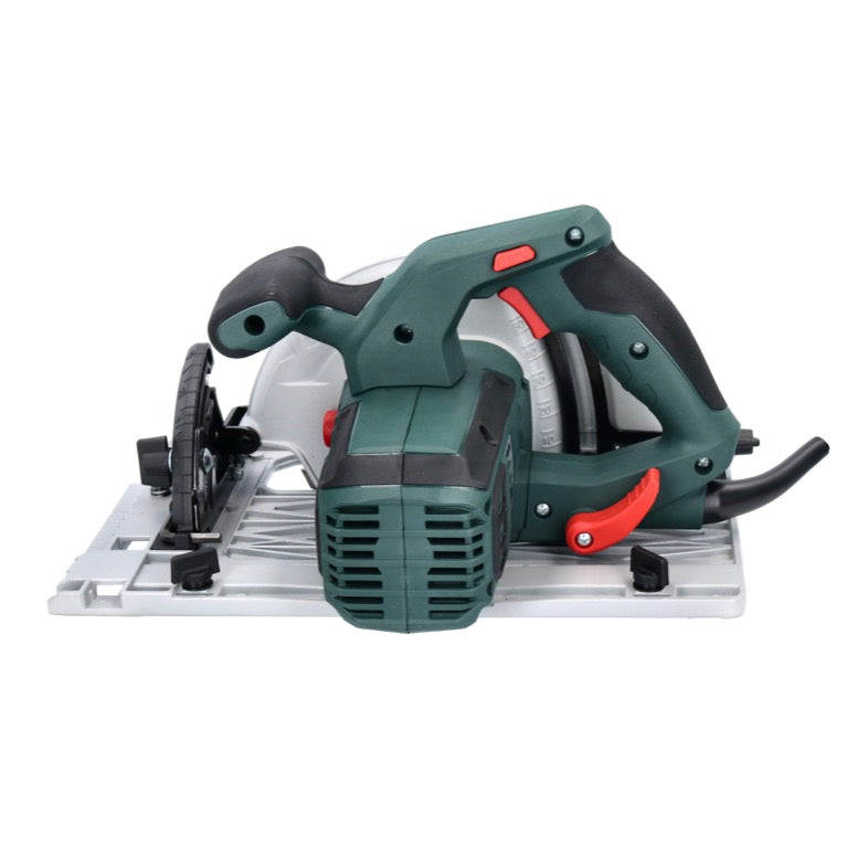 Die Firma Metabo bietet mit der KS 55 FS eine kraftvolle Handkreissäge mit 1200 W und einem gut sichtbaren Schrittanzeiger zum Sägen nach Anriss.  Der Späneauswurf lässt sich kontrollieren indem man den Absaugstutzen entsprechend dreht. Im Griffbereich befindet sich eine rutschfeste Softgrip Oberfläche. Die Führungsplatte ist aus einem Aluminiumdruckguss um Gewicht zu sparen und ein längeres ermüdungsarmes Arbeiten zu ermöglichen. Die 0° Position lässt sich einfach nachjustieren um eine möglichst hohe Schnittgenauigkeit zu erziehlen. Der Schwenkbereich geht von 0° bis zu 47°. Metabo verbindet eine lange Tradition zu Werkzeugen aller Art, darüber hinaus ist Metabo Mitglied im CAS Konzern und besitzt somit eine breite Pallette an kompatiblen Geräten und Akkus anderer Hersteller.