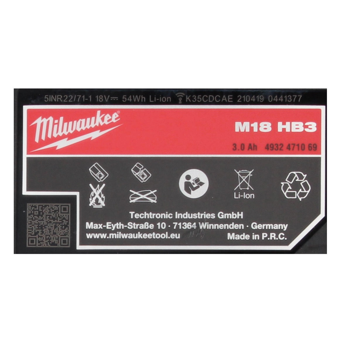 Milwaukee M18 HB3 High Output 18 V 3,0 Ah / 3000 mAh Li-Ion Akku ( 4932471069 ) mit Ladestandsanzeige