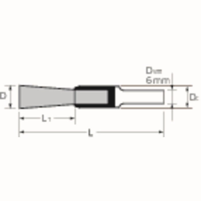 - Sicherheitshinweise: Beim Einspannen der Bürste ist darauf zu achten, dass der Schaft möglichst weit in die Aufnahme eingespannt wird. Dies gilt insbesondere für den Einsatz im hohen Drehzahlbereich. Die Mindesteinspannlänge beträgt 10 mm.